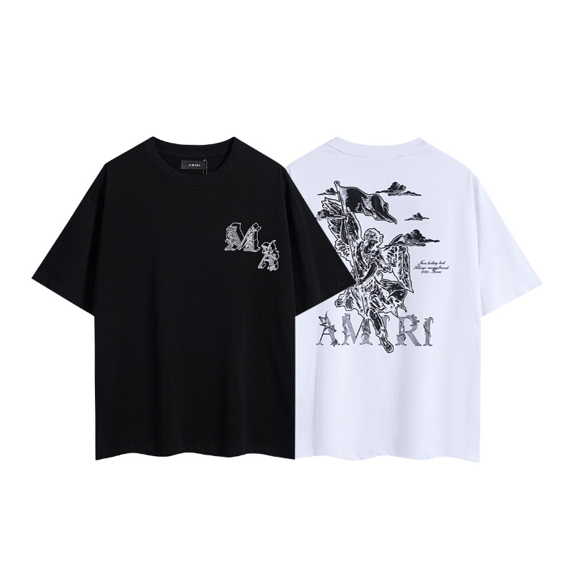 24SS跨境欧美潮牌amri微标创意字母22印花短袖t恤男女高街半袖衫
