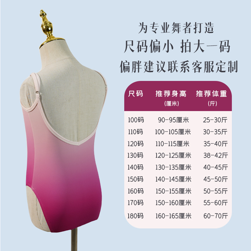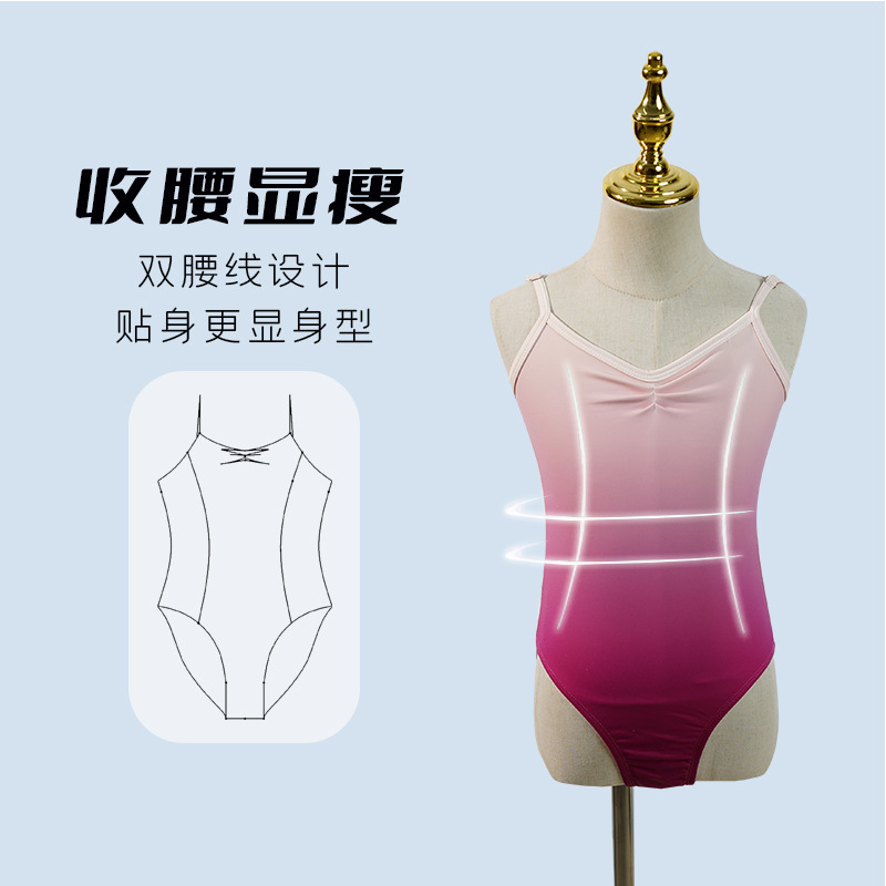 渐变色高弹吊带体服儿童体操服舞蹈服芭蕾舞体服啦啦操演出服