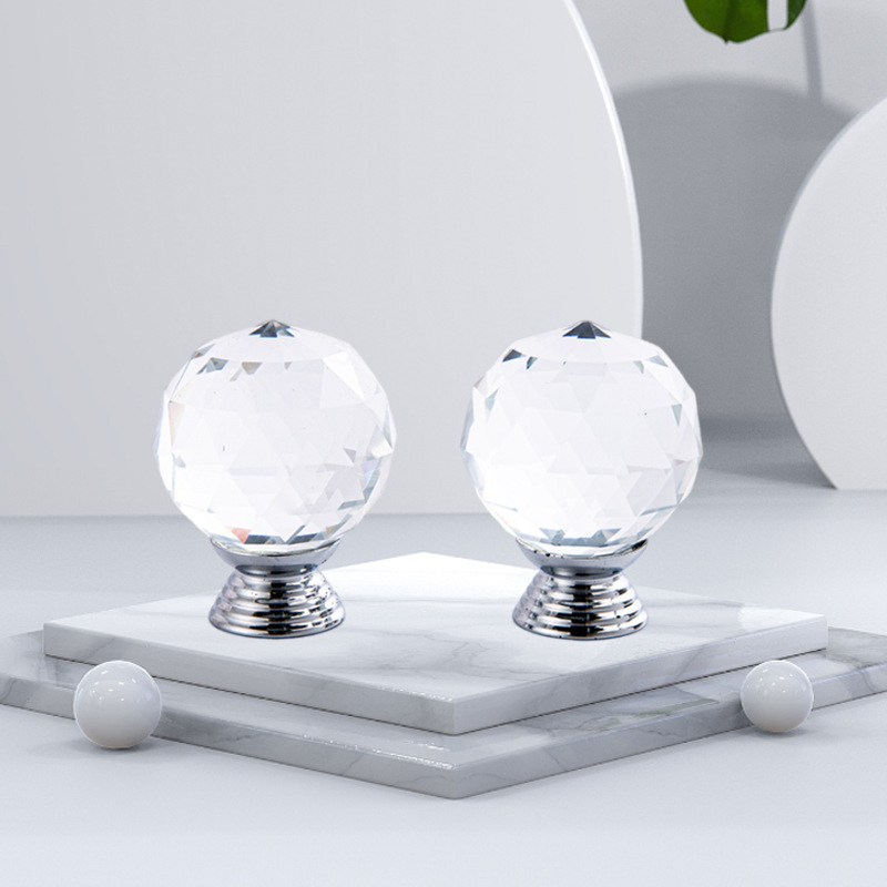 轻奢简约透明单孔水晶抽屉拉手厂家水晶球玻璃拉手铝合金底门把手