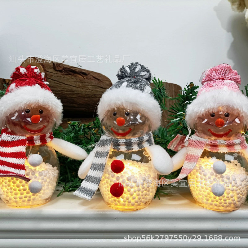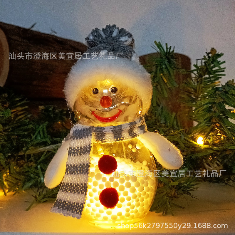 2025新款圣诞节带灯发光雪人创意礼品透明发光罐雪人圣诞装饰品