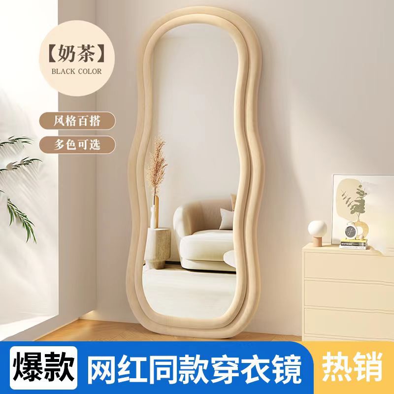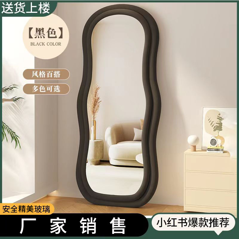 落地镜波浪全身镜子ins风服装店试衣镜高清精美大落地镜靠墙镜子