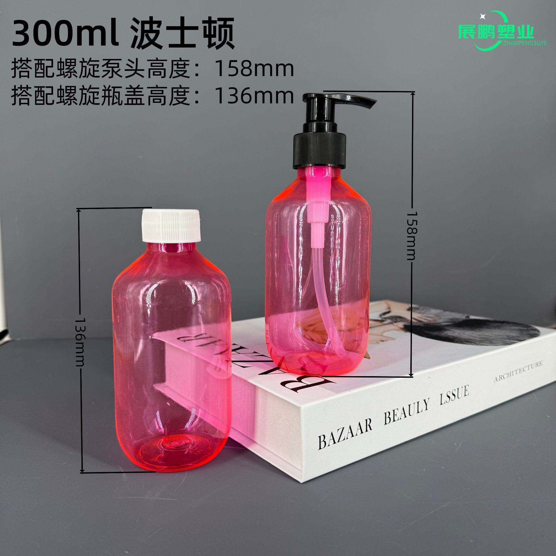 300ml24口洗发水瓶PET透色沐浴露瓶按压式瓶子洗手液塑料瓶