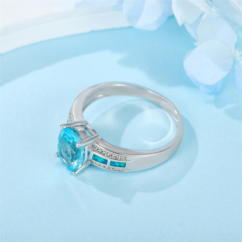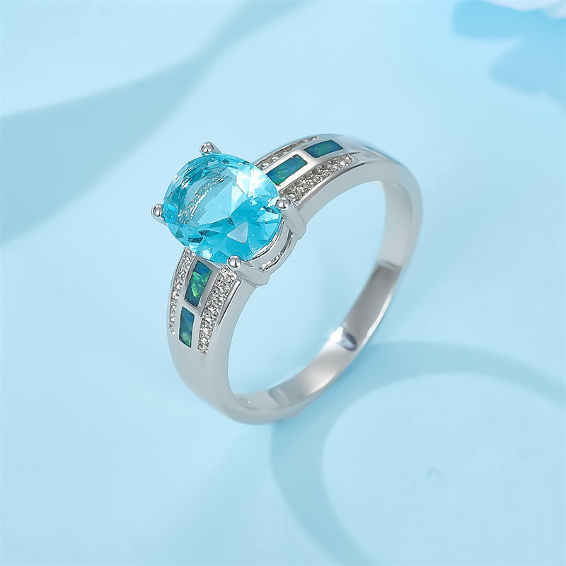 2024现货新款亚马逊澳宝蓝宝戒指首饰简约时尚个性复古风女配饰