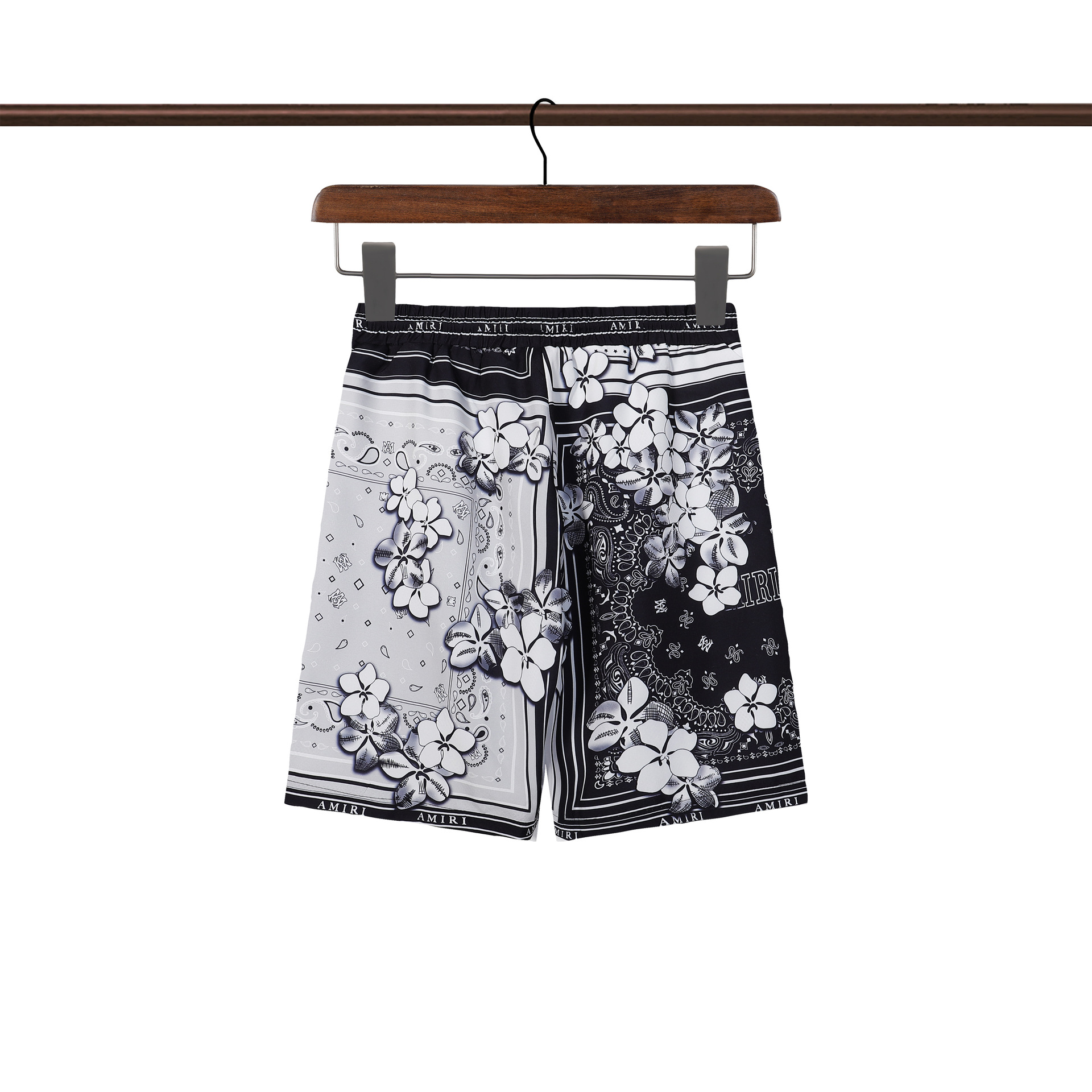 夏沙滩宽松衬衫套装 欧美数码印花拼格腰果花休闲短裤开衫套装男