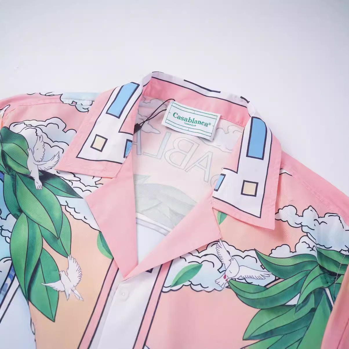 2024卡萨新款欧美潮流外贸时尚休闲男士数码印花短袖衬衫衬衣潮男