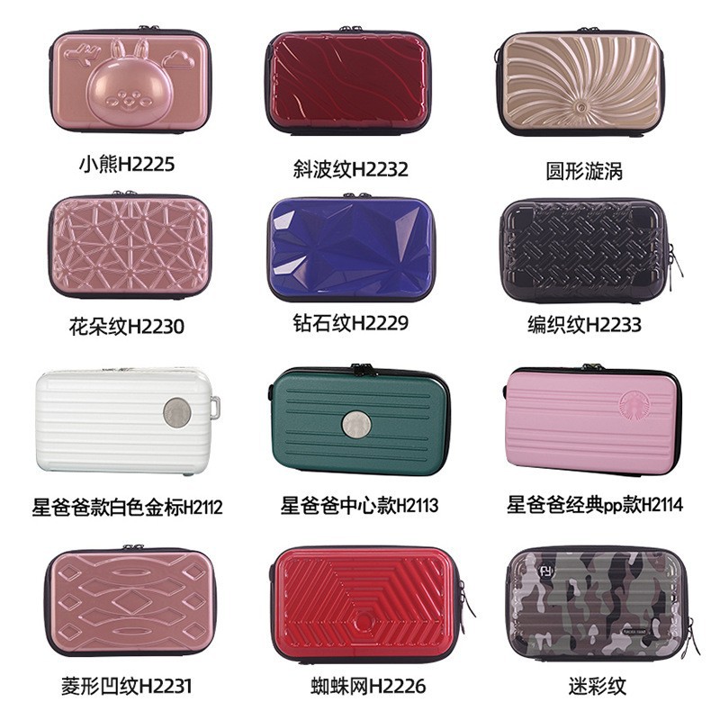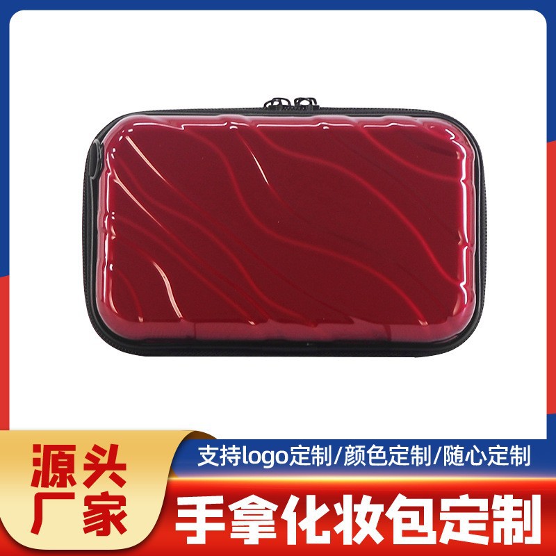 PC硬壳化妆包斜波纹手拿旅行过夜洗漱包零钱收纳包化妆箱撞色