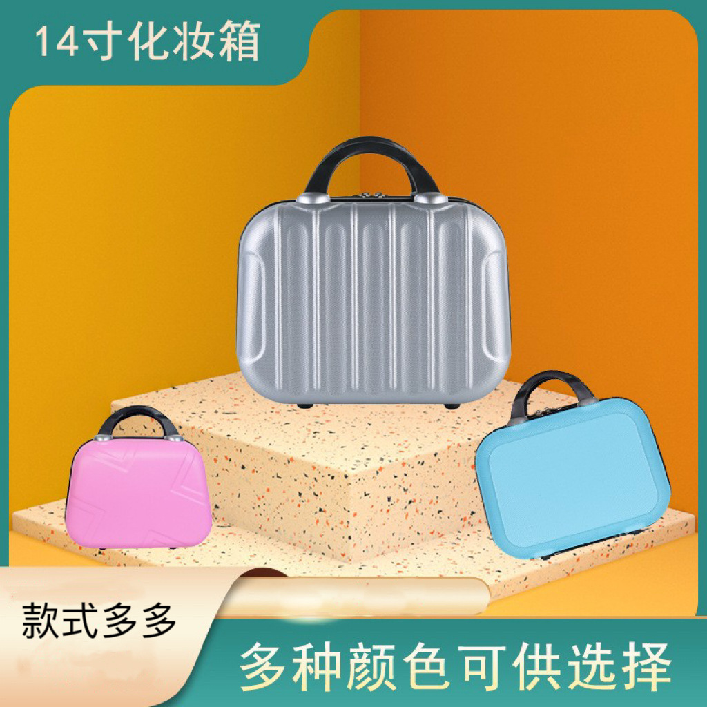 手提14寸竖纹化妆包ABS平面多色旅行收纳箱迷你化妆箱化妆品箱