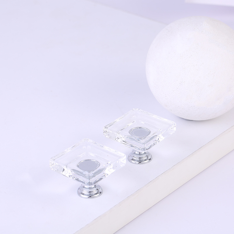 轻奢抽屉橱柜门方形水晶拉手家具衣柜门透明把手批发 有带螺丝款