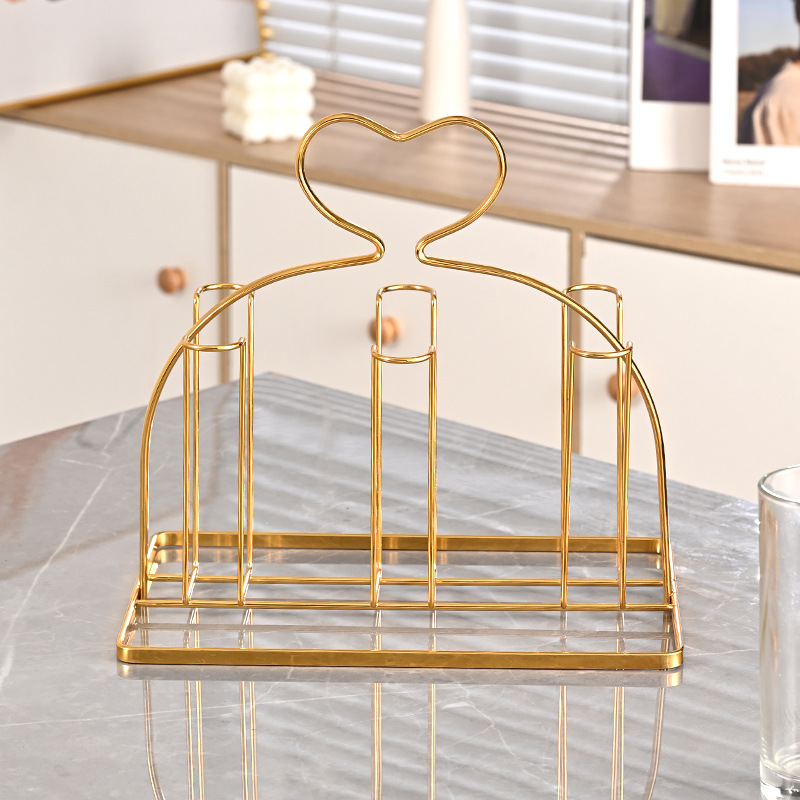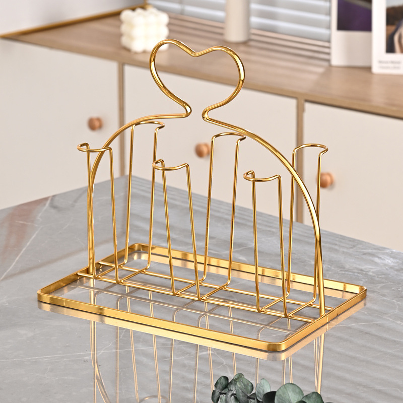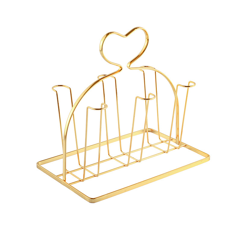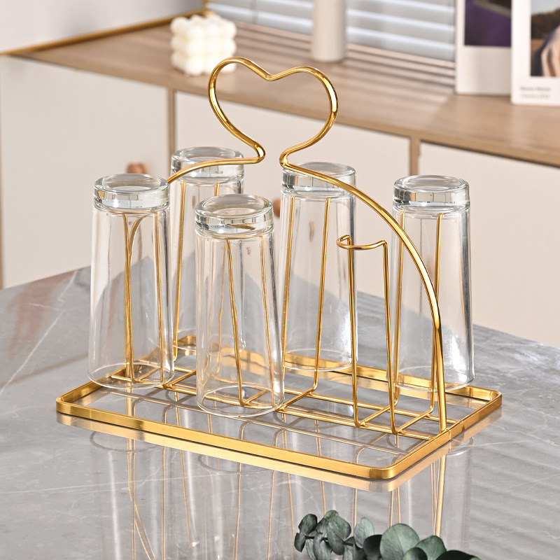 大心形铁艺6杯架厨房倒放水杯沥水架客厅轻奢茶杯收纳架置物架