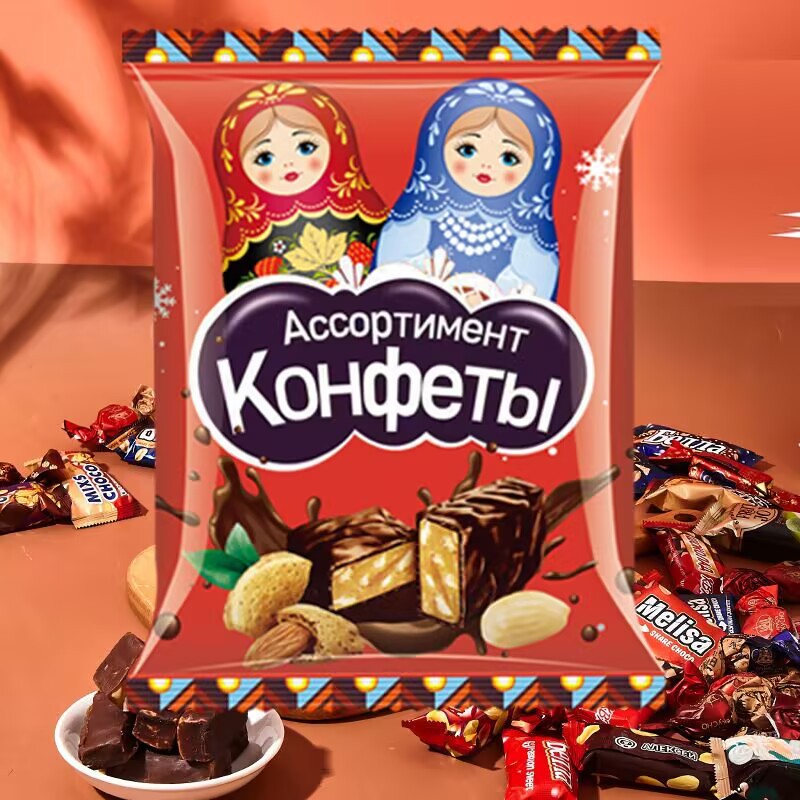 俄罗斯糖果巧克力进口糖混合紫皮糖食品批发一件代发进口巧克力