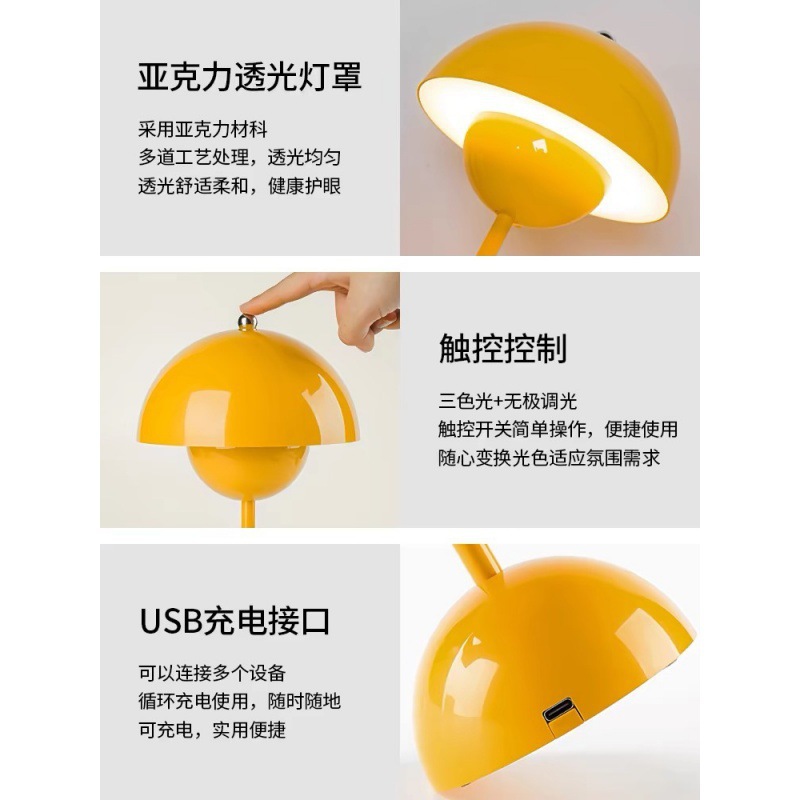 | 尺寸 | 奶油黄三色充电触摸款-无极调光 | 尺寸 | 喜庆红三色充电触摸款-无极调光 |