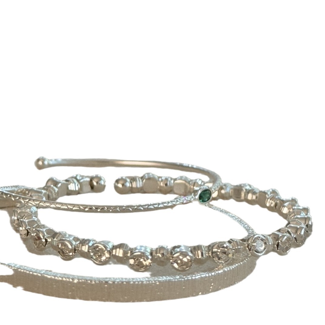 精致银色细镯深蓝皓石宽边竖纹半镯可调节复古简约大气高级感手镯