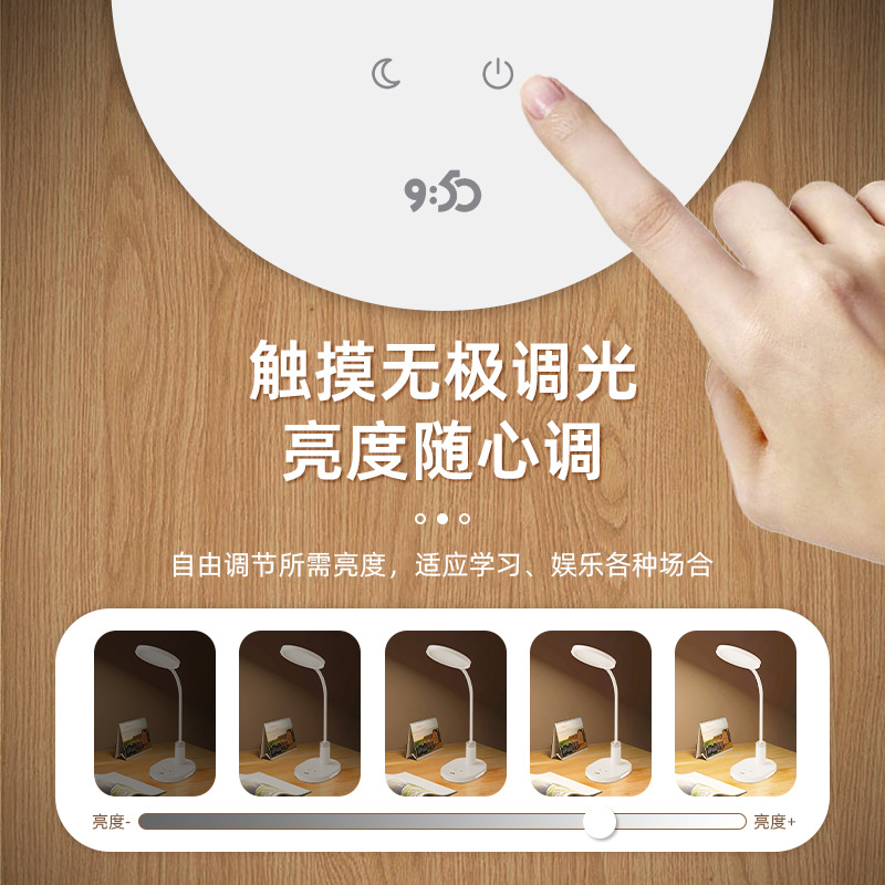 玖点伍拾充插两用防频闪LED台灯学生学习卧室宿舍写字护眼调光阅
