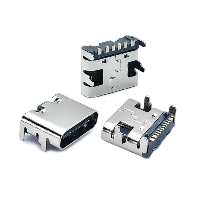 type-c母座6P板上四脚插长6.8MM【铁壳】发100只