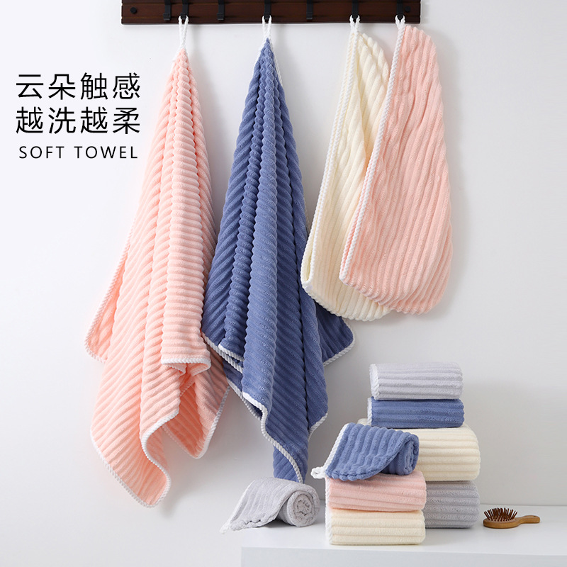 珊瑚绒浴巾立体条纹封边糖果条绒加厚浴巾爆款果冻条家用成人浴巾