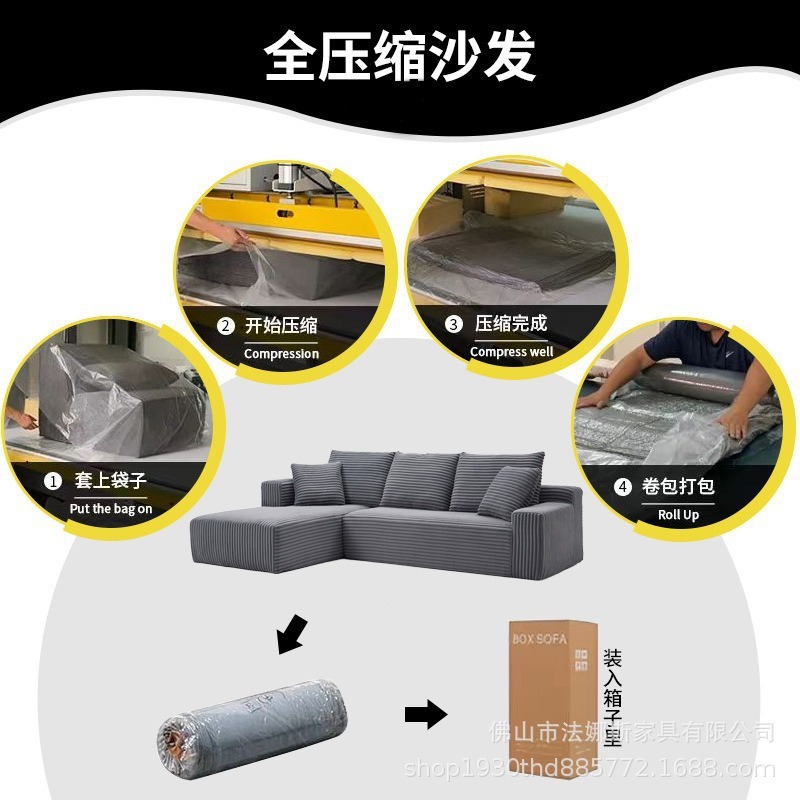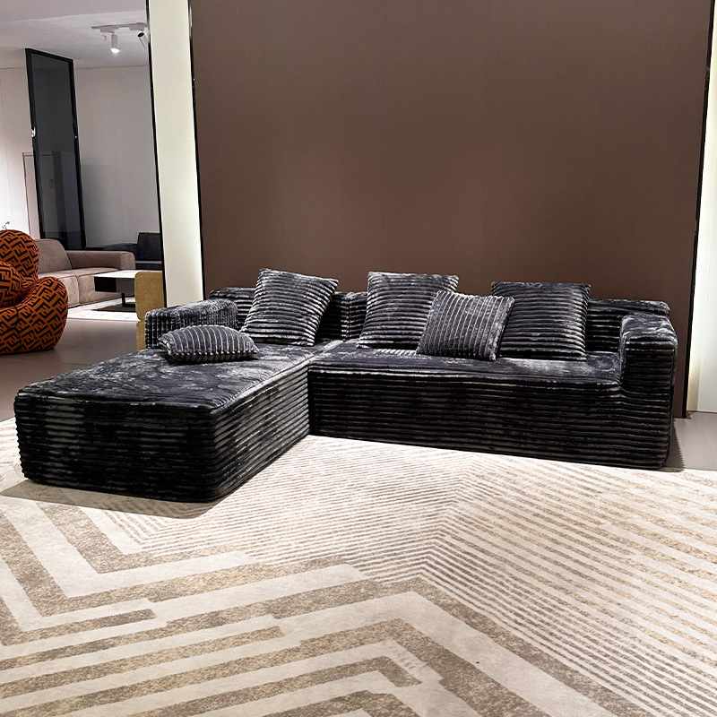 真空压缩大户型客厅意式极简转角沙发全海绵L型模块极简风格