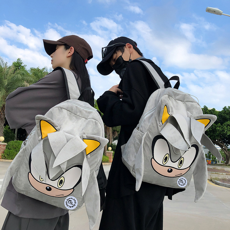 索尼克双肩包毛绒书包可爱小众大容量卡通学生校园包包潮潮趣设计