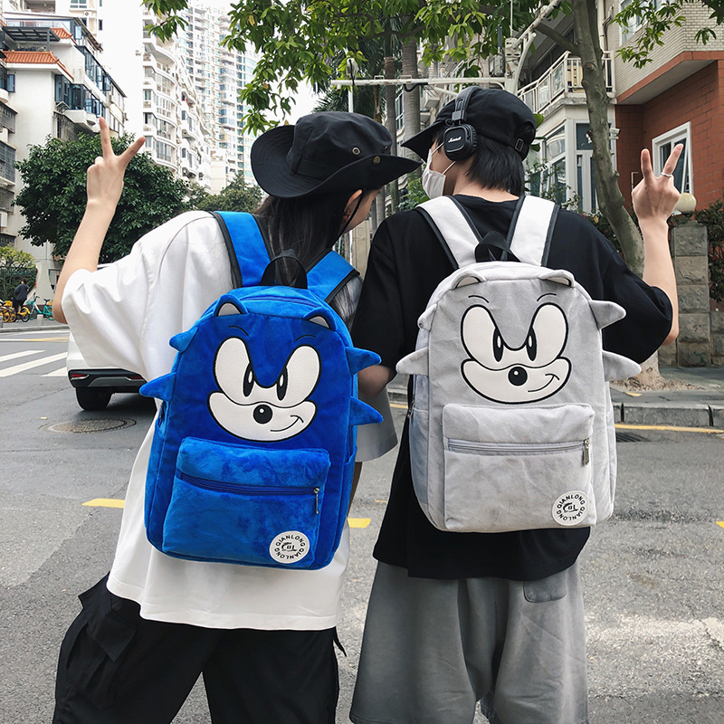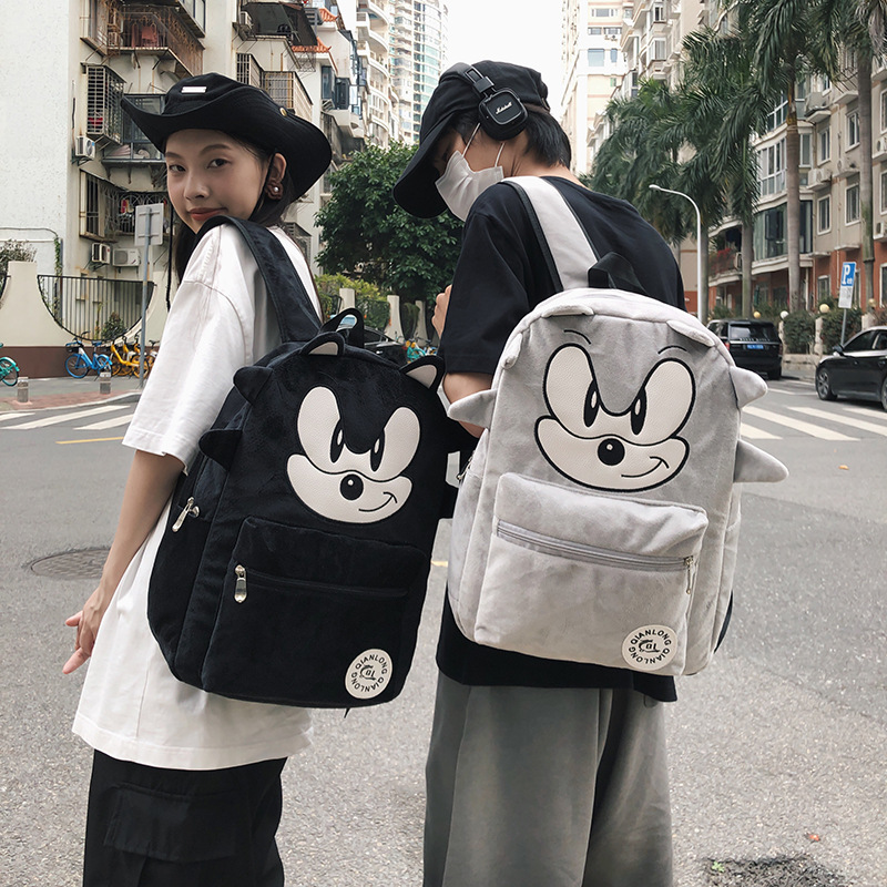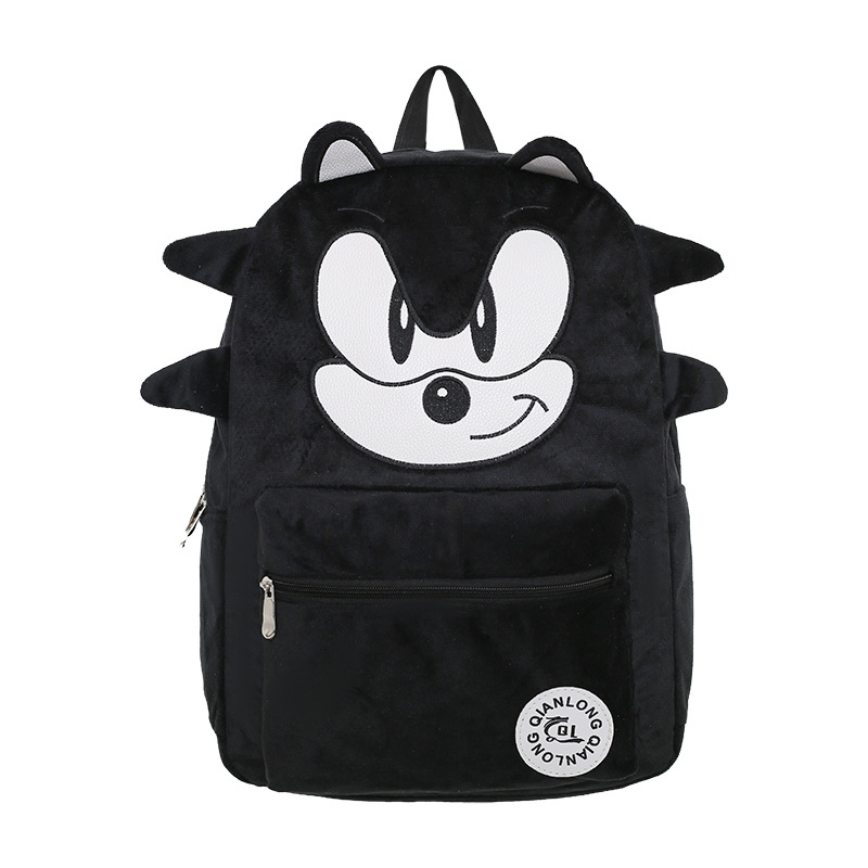 初中高中生大学生自制索尼克暗影黑色刺猬鼠毛绒双肩包撞色背包
