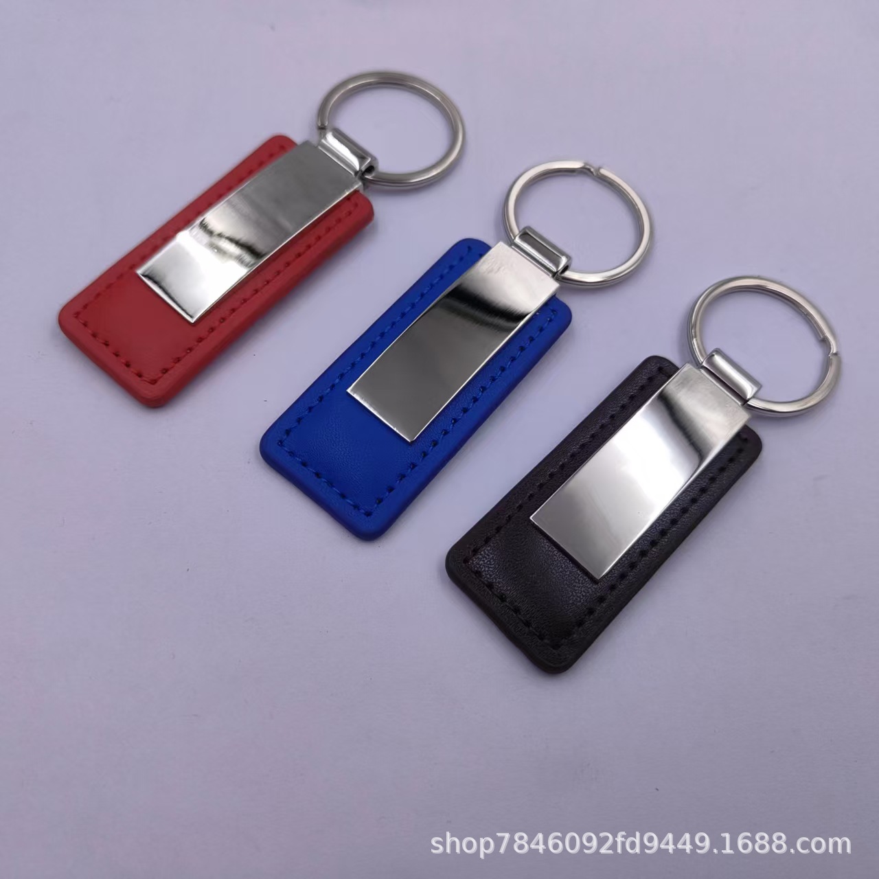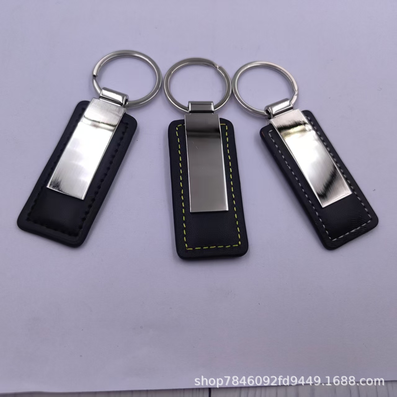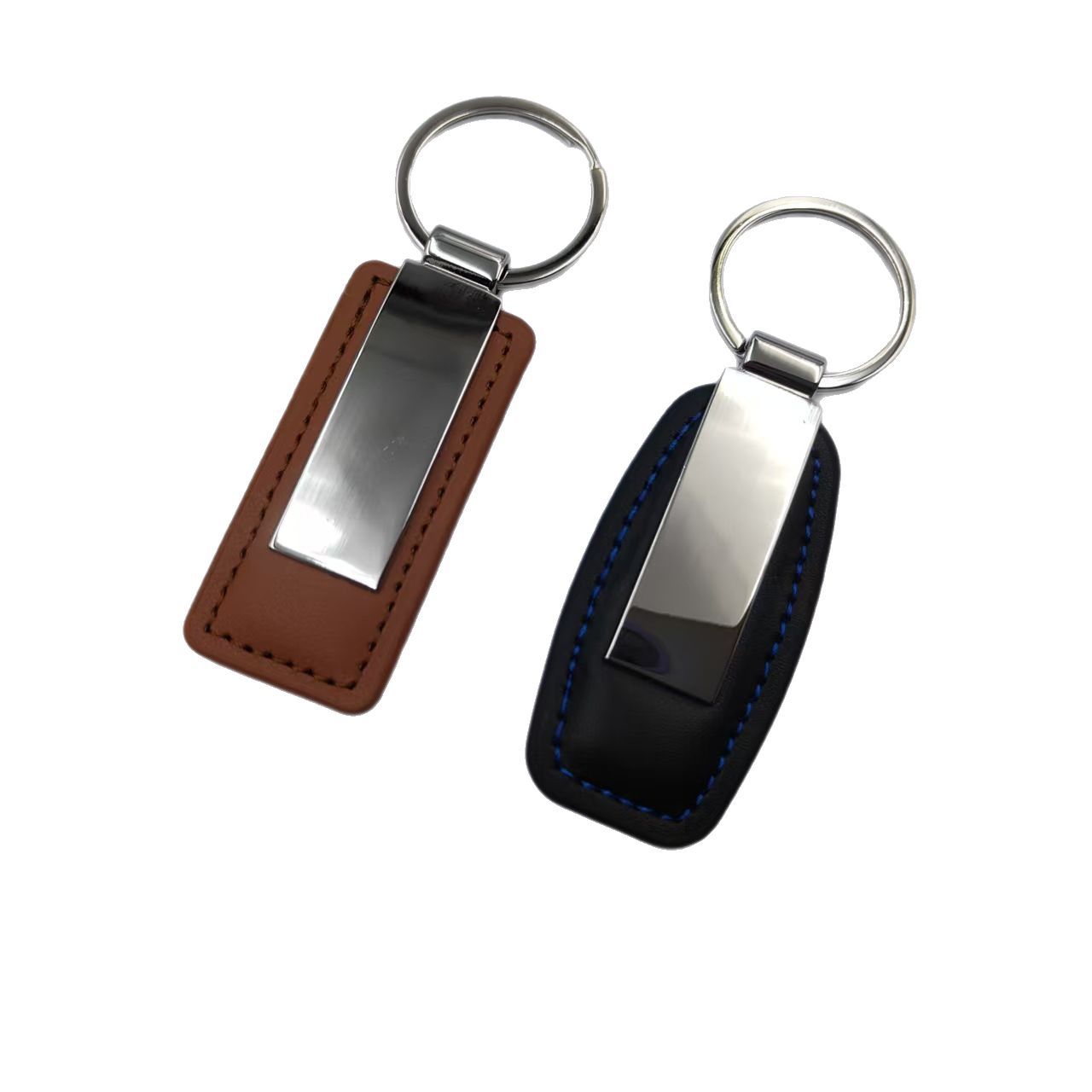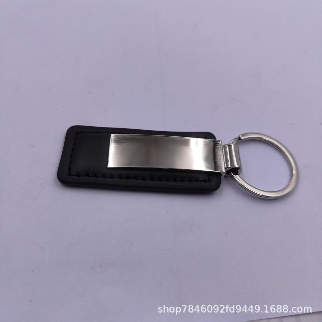 黑色方形光面钥匙扣 创意汽车金属钥匙扣 pu皮真皮钥匙扣 小礼品