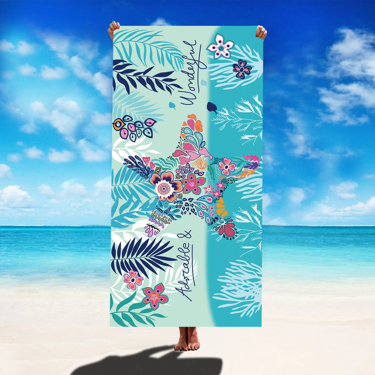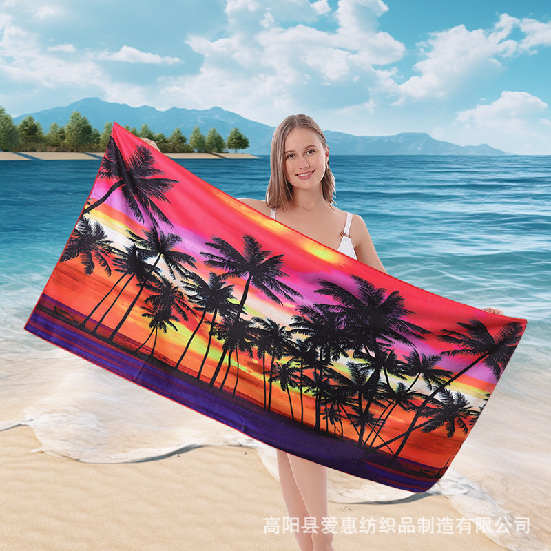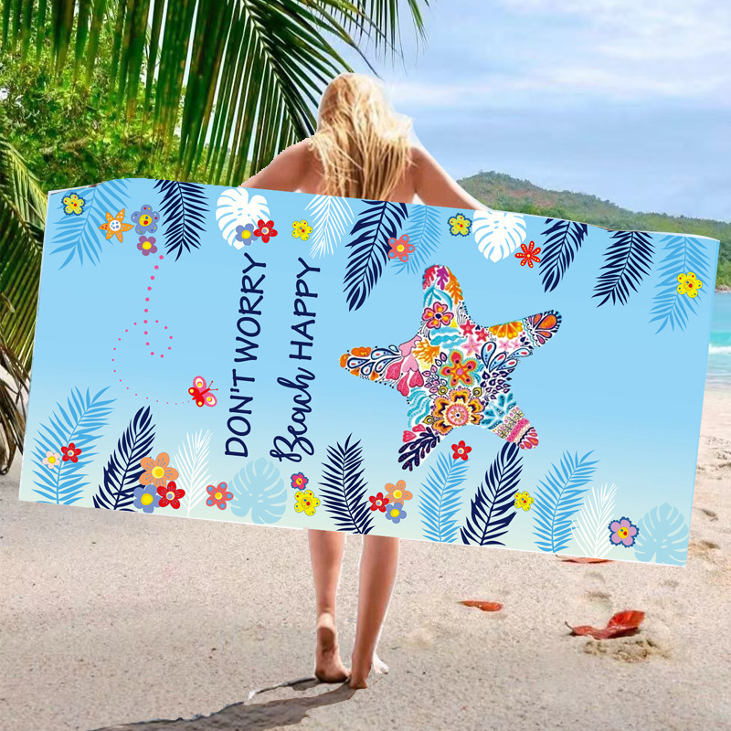 跨境游泳防晒速干吸水沙滩巾柔软超细纤维加大浴巾数码印花披肩