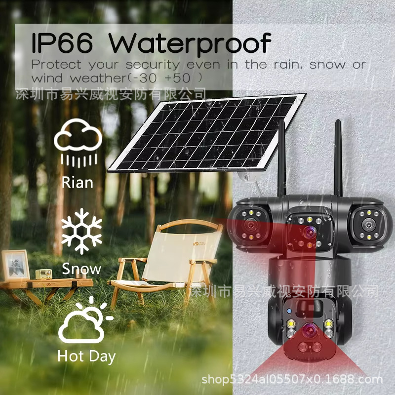 规格太阳能枪球三目国内4G版+64G 内存卡+终身流量卡