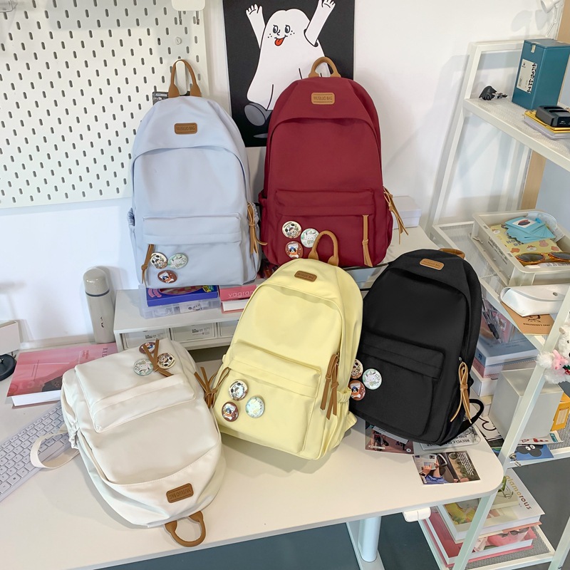 韩版书包女ins森系百搭双肩包简约高中初中生日系背包高颜值
