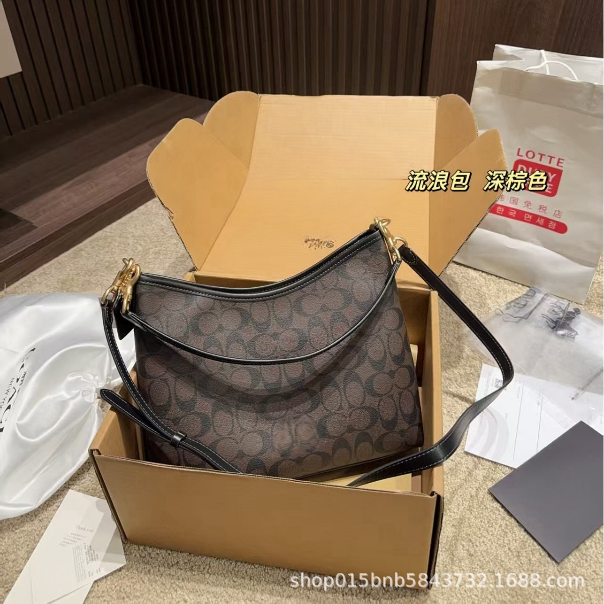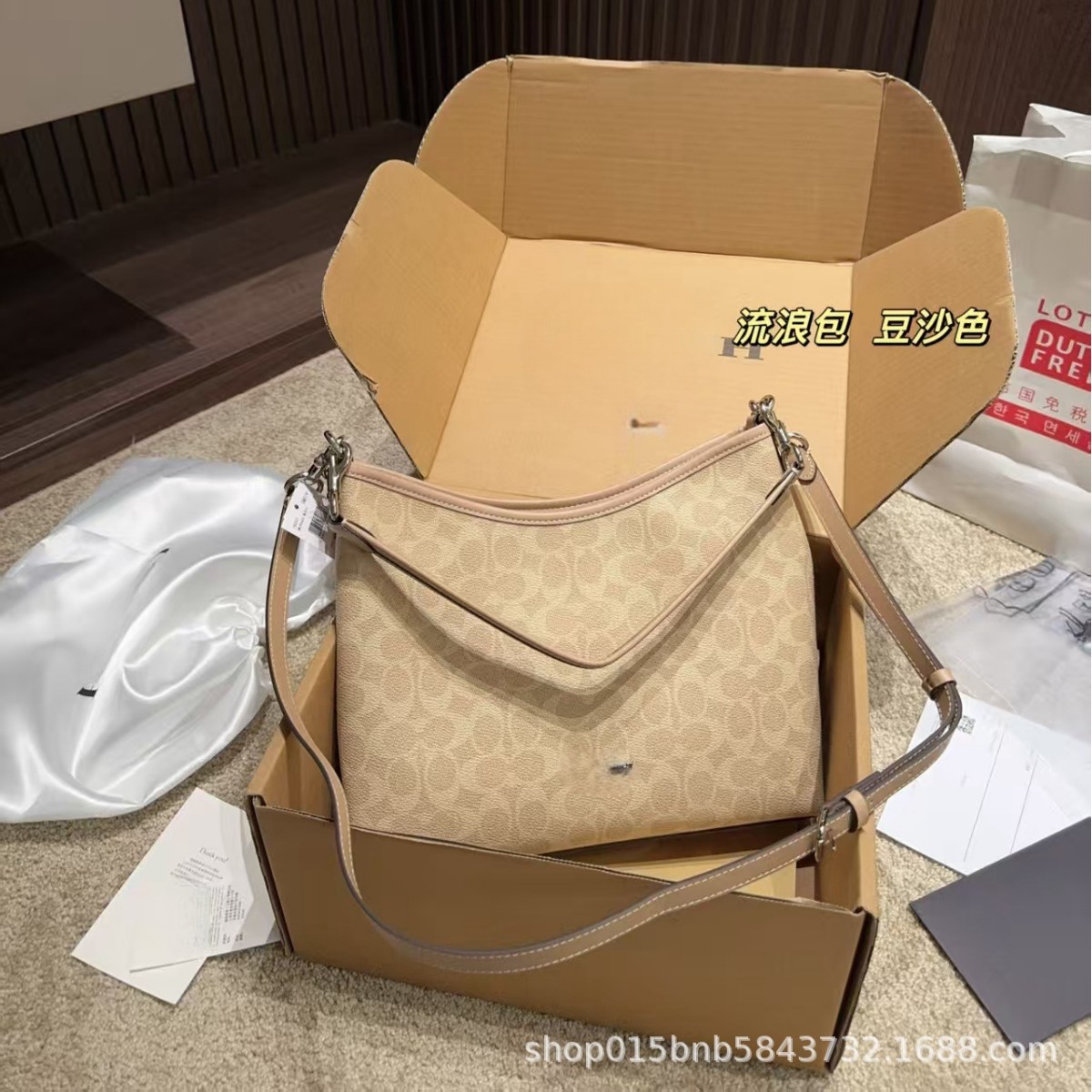 寇家Laurela单肩奶茶色老花纯色斜跨托特腋下包大容量流浪包百搭