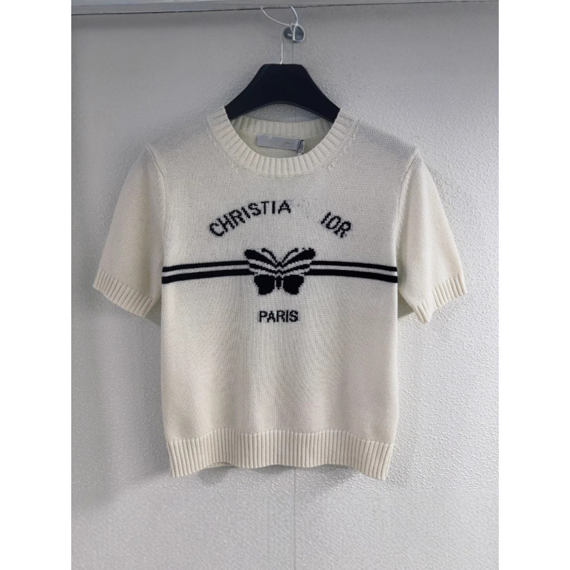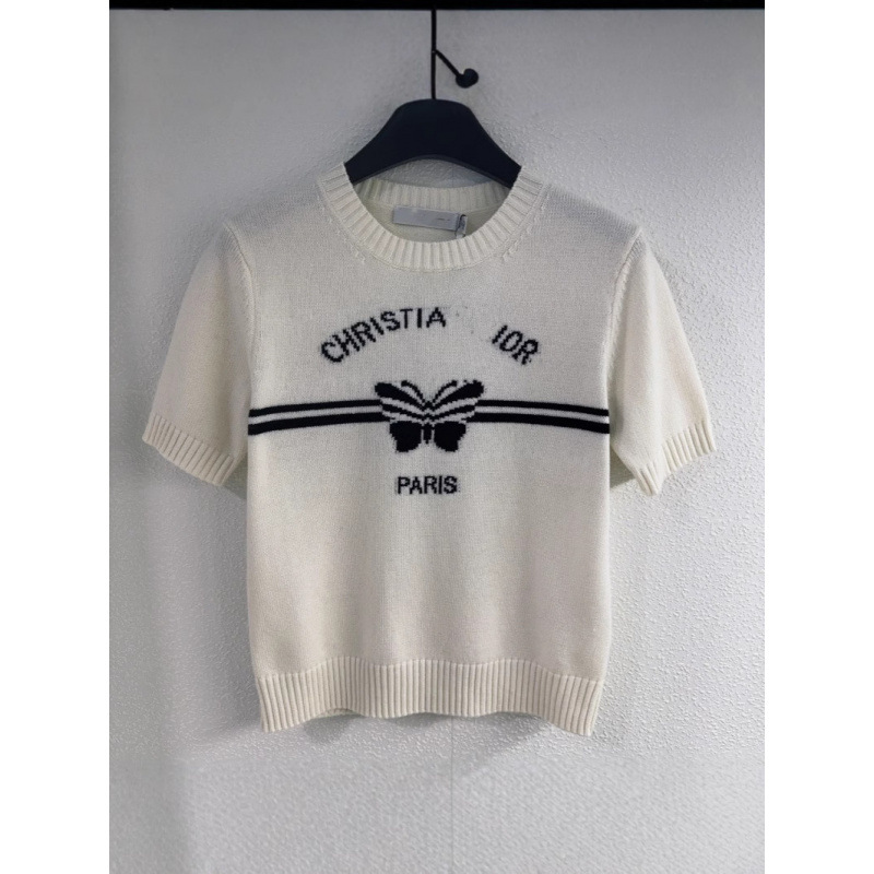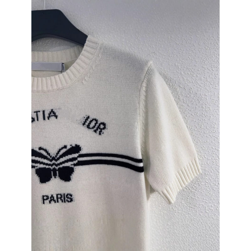 25年早春风字母蝴花针织短袖经典设计搭配上字母和蝴花元素针织衫