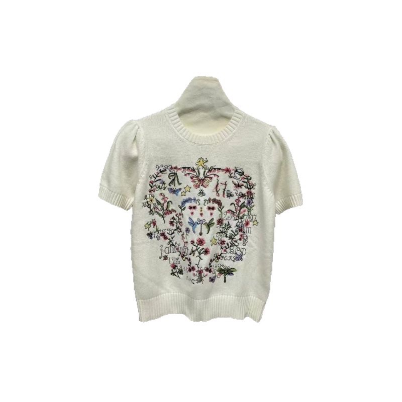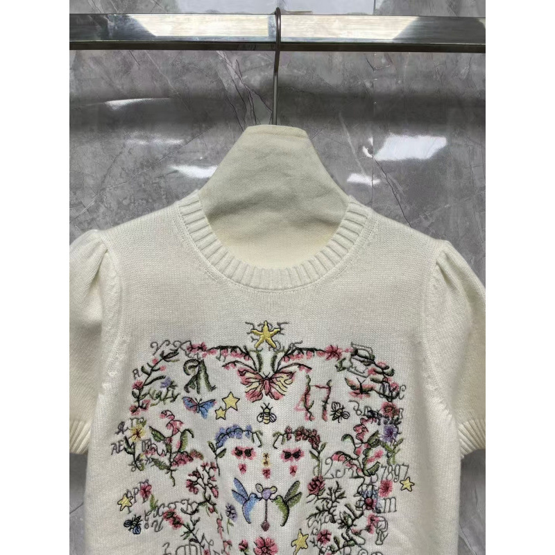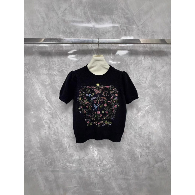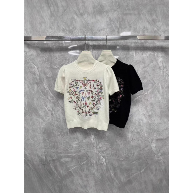 D家南油高端女装2025新款正确版莫奈花园花卉薄款针织衫短袖女t恤