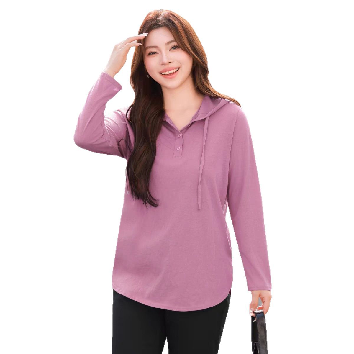 韩版休闲竹节棉圆领连帽防晒衫打底衫大码2024年夏季新款