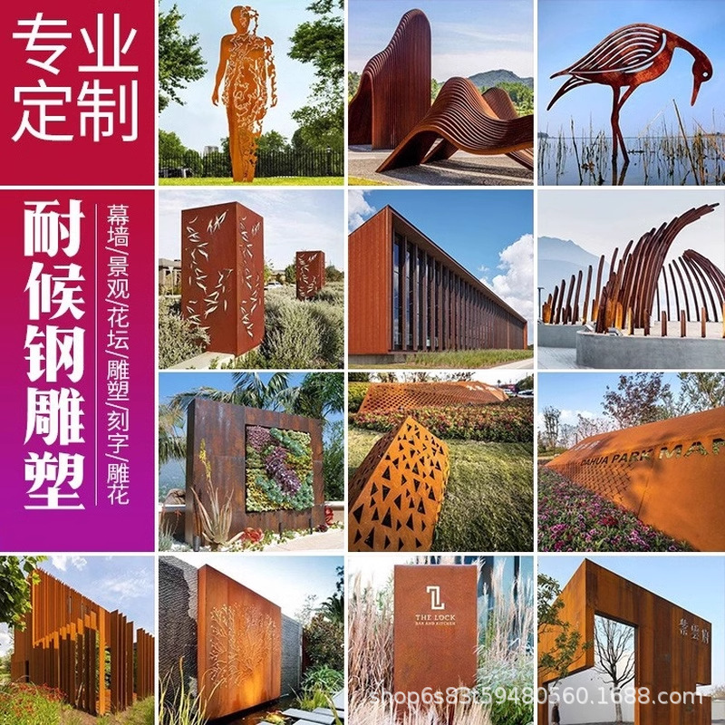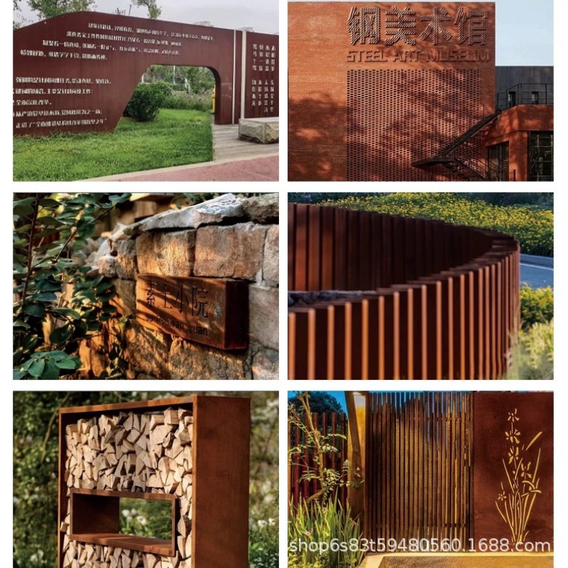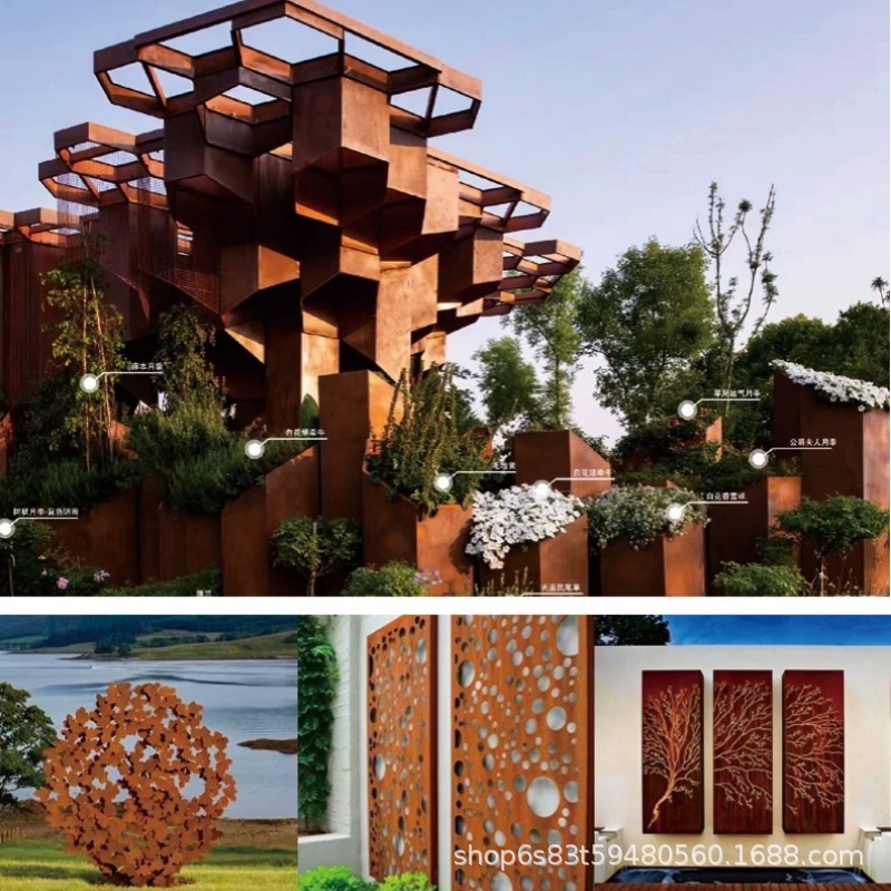 锈板景墙雕刻户外花箱耐候钢红锈钢板雕塑景观幕墙镂空切割灯箱厂