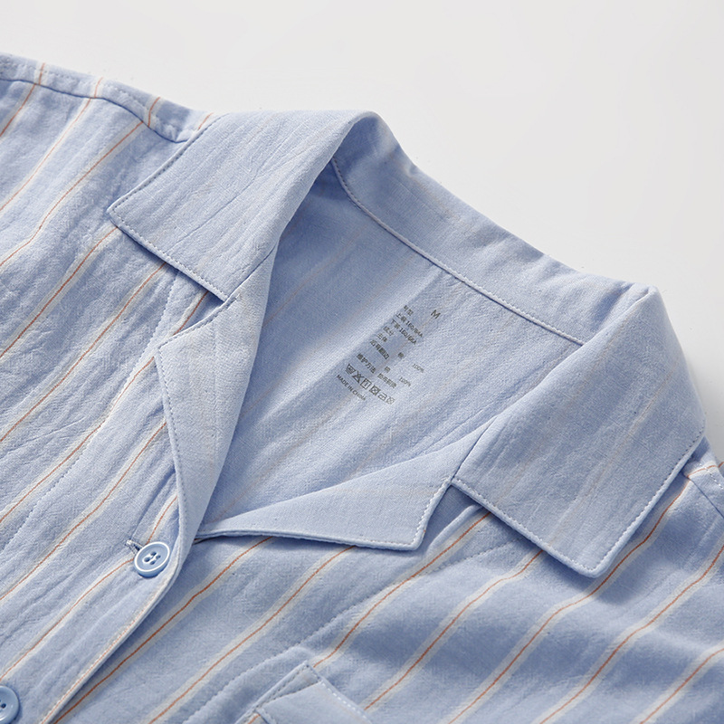 春秋款纯棉双层纱布男款女款长袖家居服套装休闲长袖长裤睡衣套装