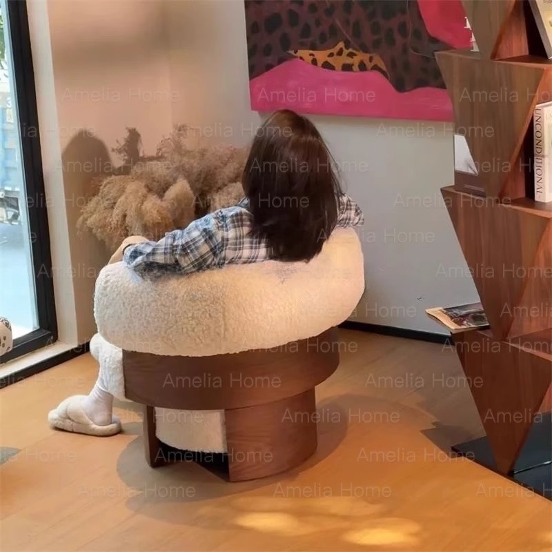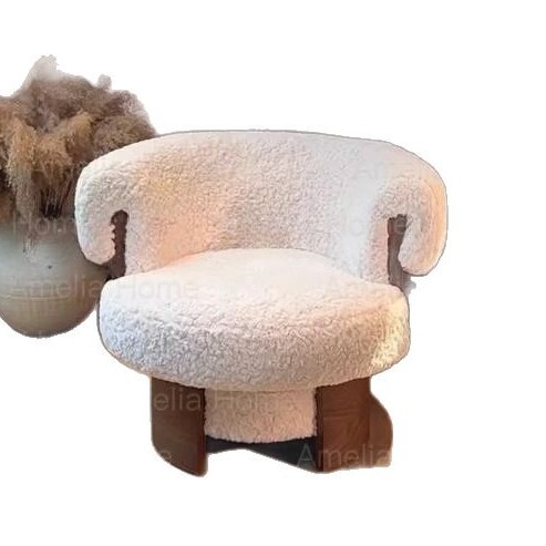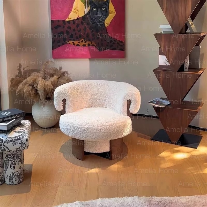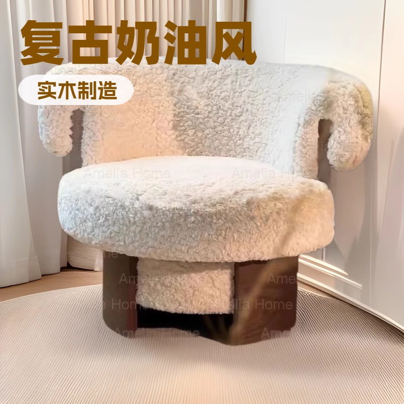 复古奶油风旋转单人沙发椅设计师中古风卧室休闲椅客厅懒人椅实木