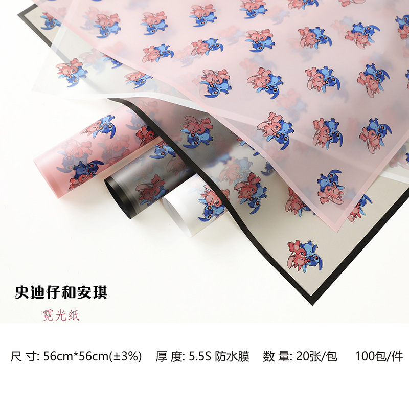 跨境专供卡通史迪仔夫妇印花鲜花包装纸花店花艺鲜花包装