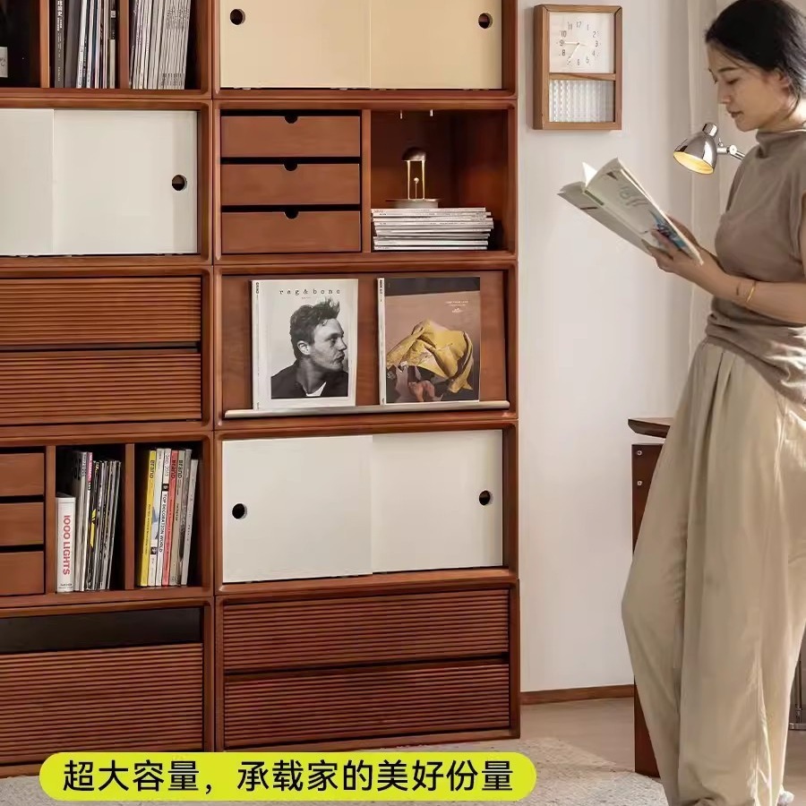 储物柜定制北欧实木书柜家用落地多功能电视柜客厅靠墙复古收纳柜