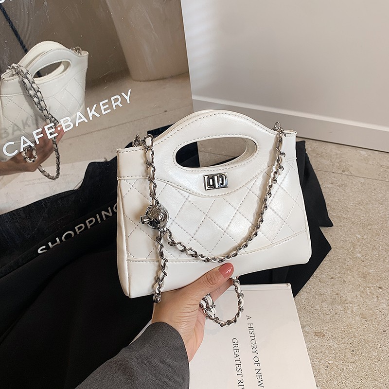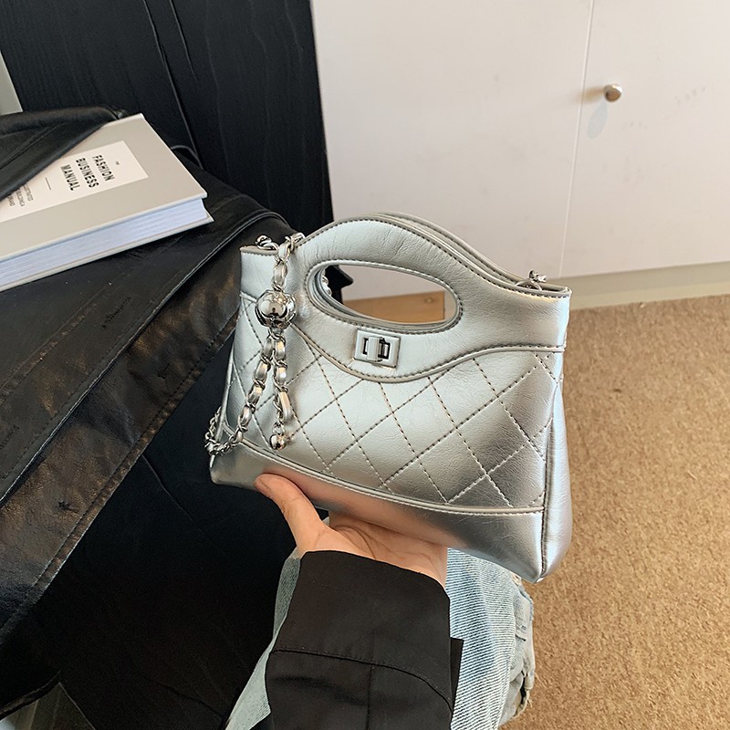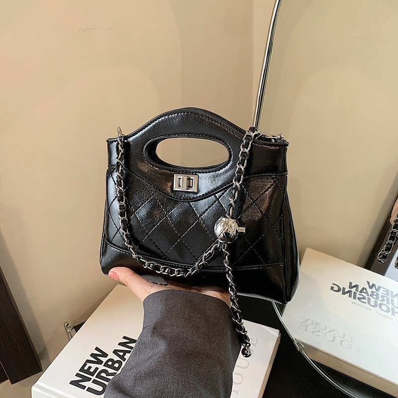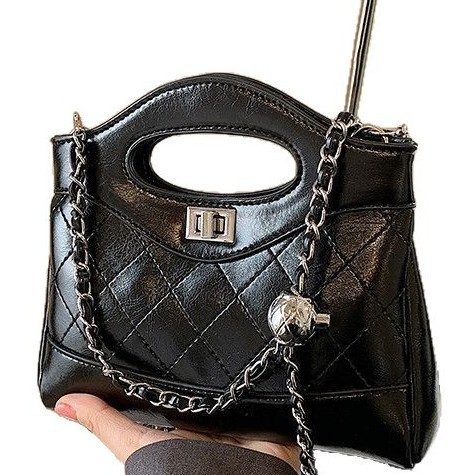 小香风手提菱格链条包包2024新款单肩手提包斜挎包休闲百搭通勤