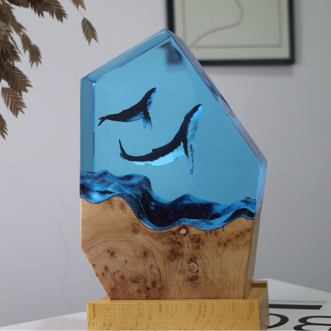 跨境小商品树脂海洋摆件潜水员夜灯深海探索木灯装饰礼物圣诞礼物