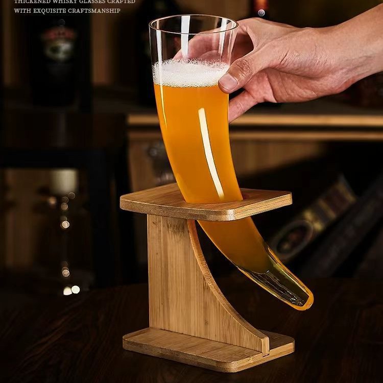创意月牙牛角杯麦芽杯啤酒杯套装网红玻璃杯人工吹制水晶玻璃批发