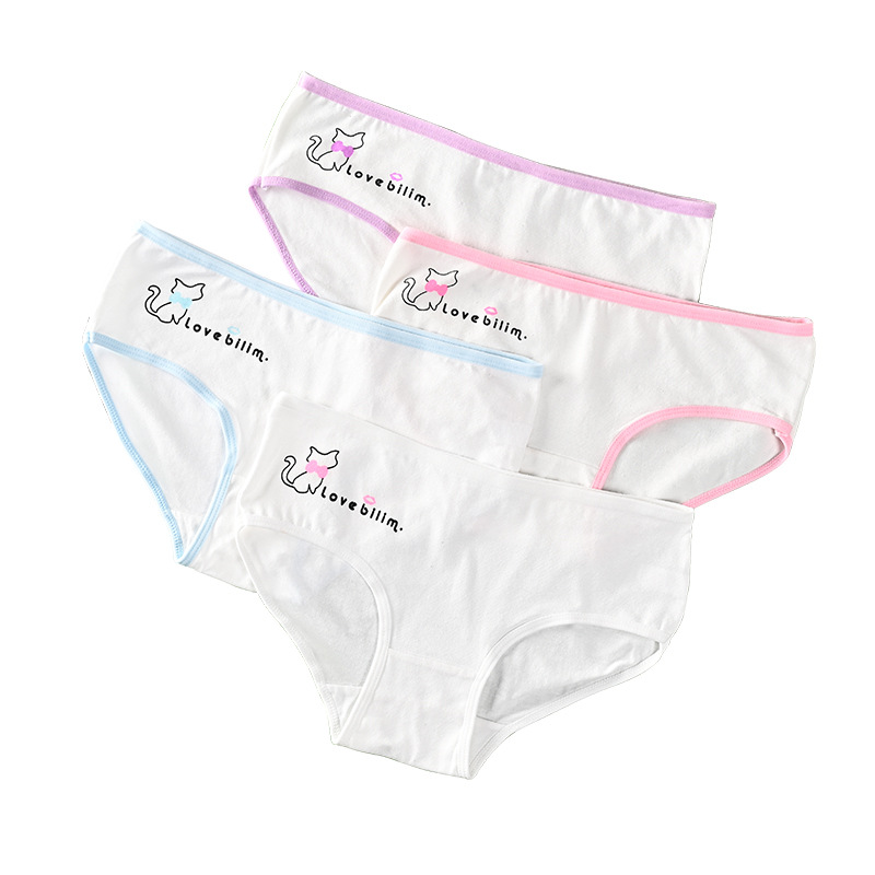 定制少女内裤棉三角裤透气儿童裤头可爱学生包臀猫猫图案女童内裤