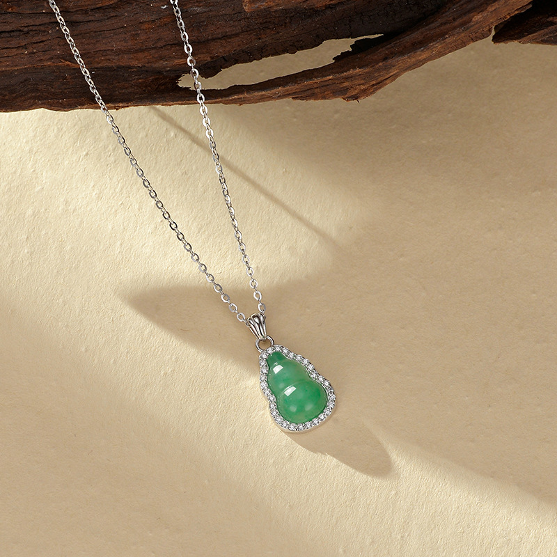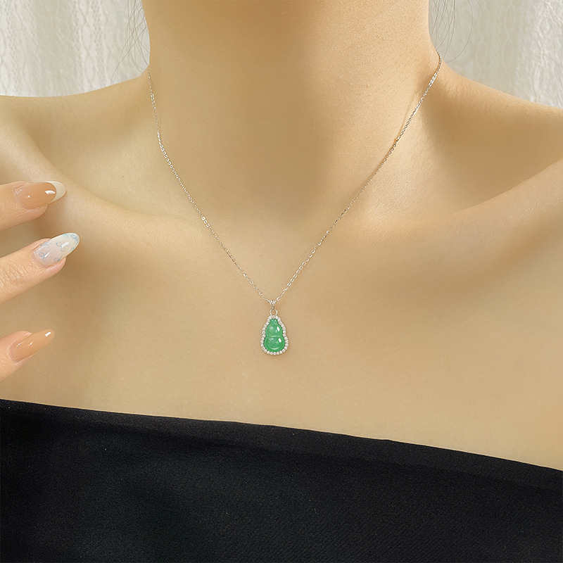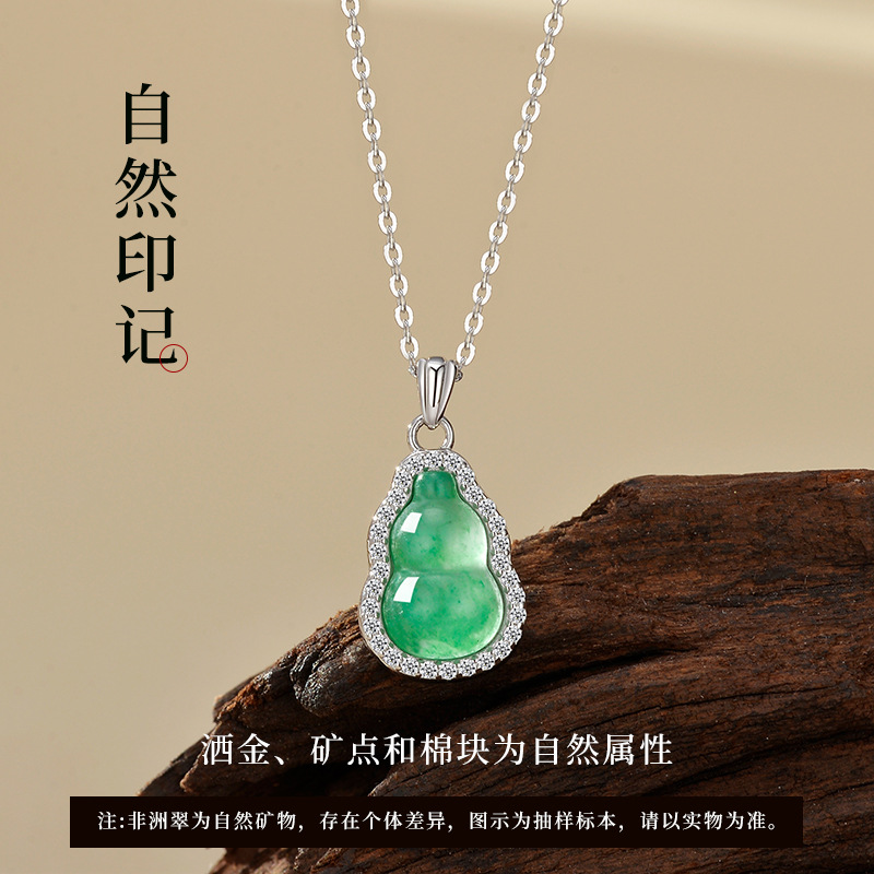 福禄安康天然非洲翠项链女S925纯银国风高级感镶钻葫芦吊坠锁骨链