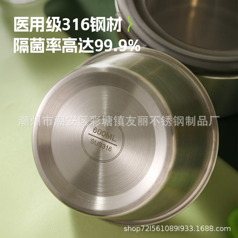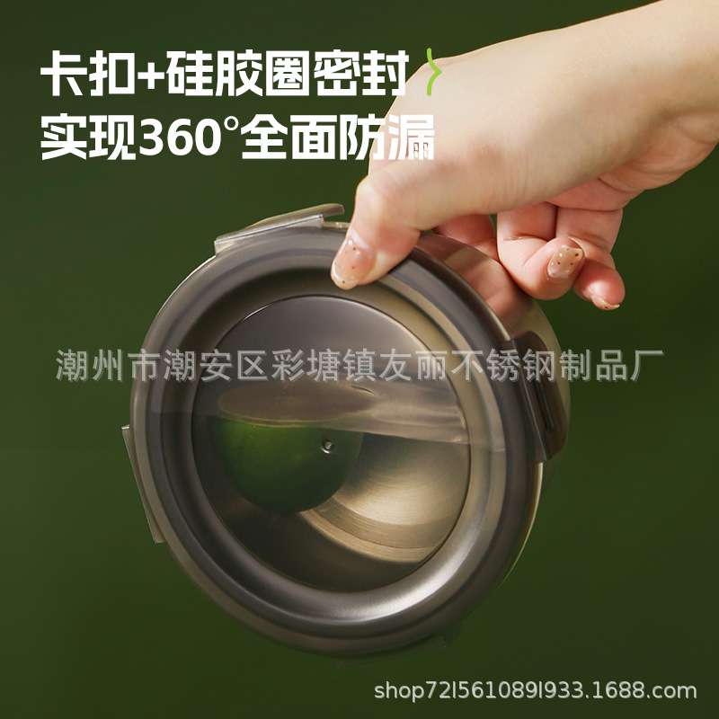 跨境304不锈钢保鲜盒食品级圆形饭盒野餐盒水果便当盒密封带盖碗