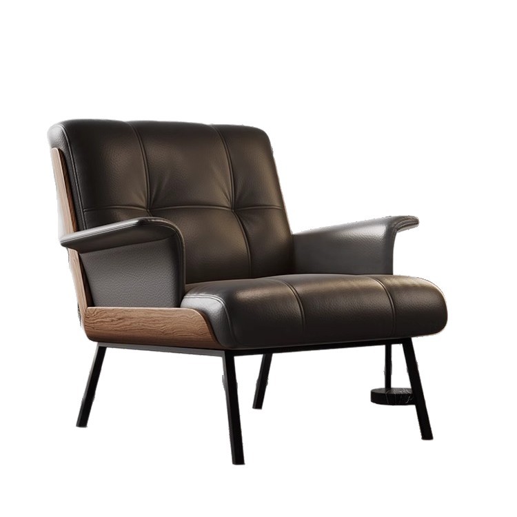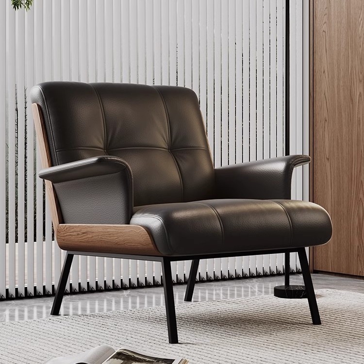 工厂直供休闲椅意式皮质单人沙发椅飞翼式扶手椅高档轻奢洽谈椅