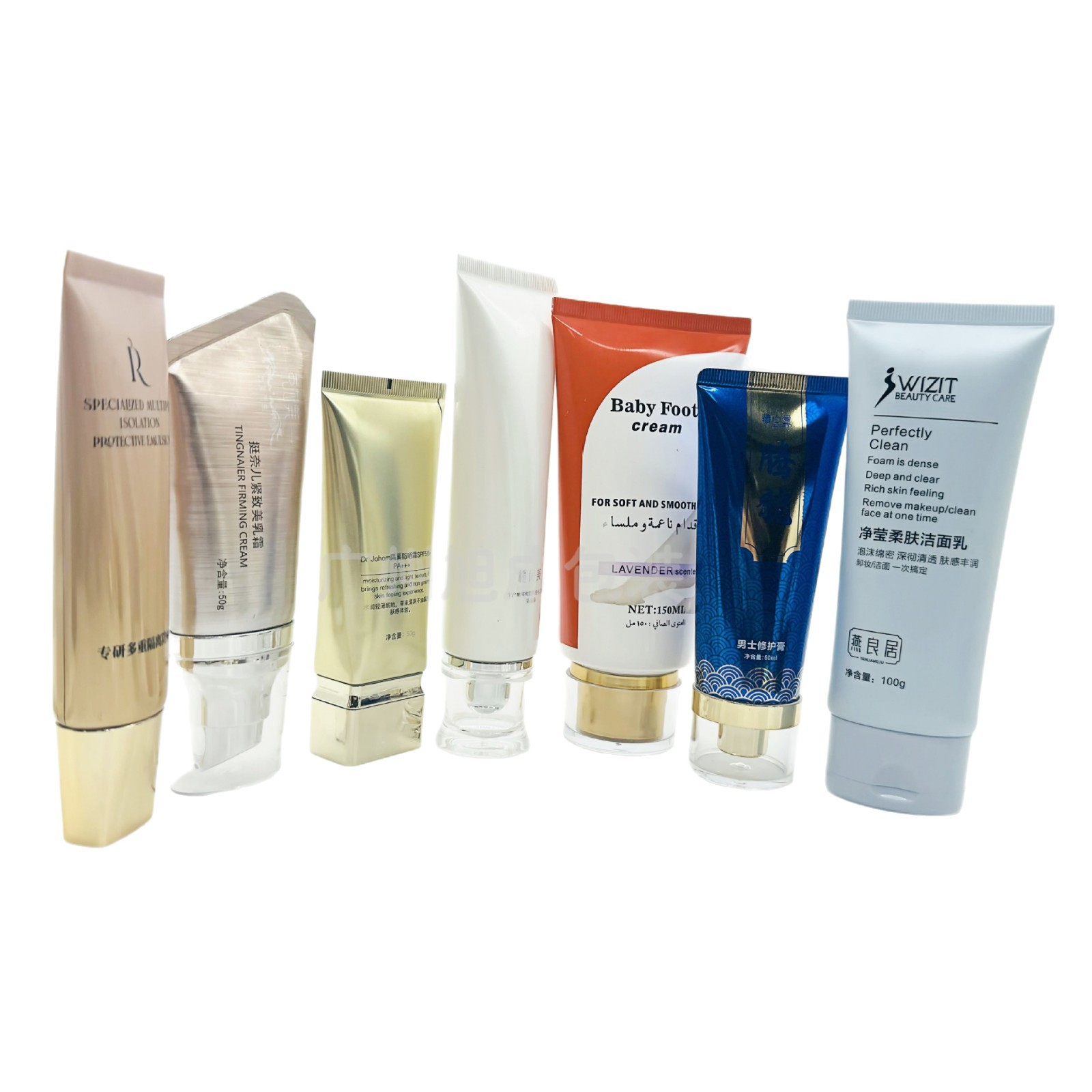 直角掀盖塑料管80-120ml化妆品软管定制护发素洗面奶包材白色带盖