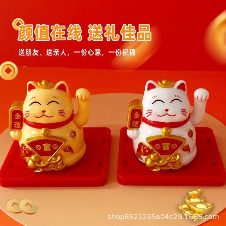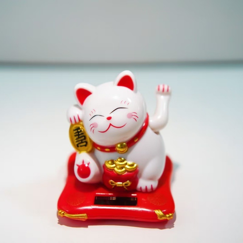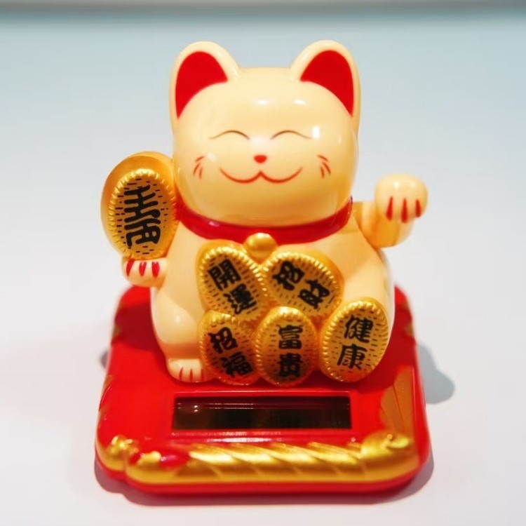 日式中文2.5太阳能摇手招财猫可爱汽车摆件烘焙蛋糕装饰品