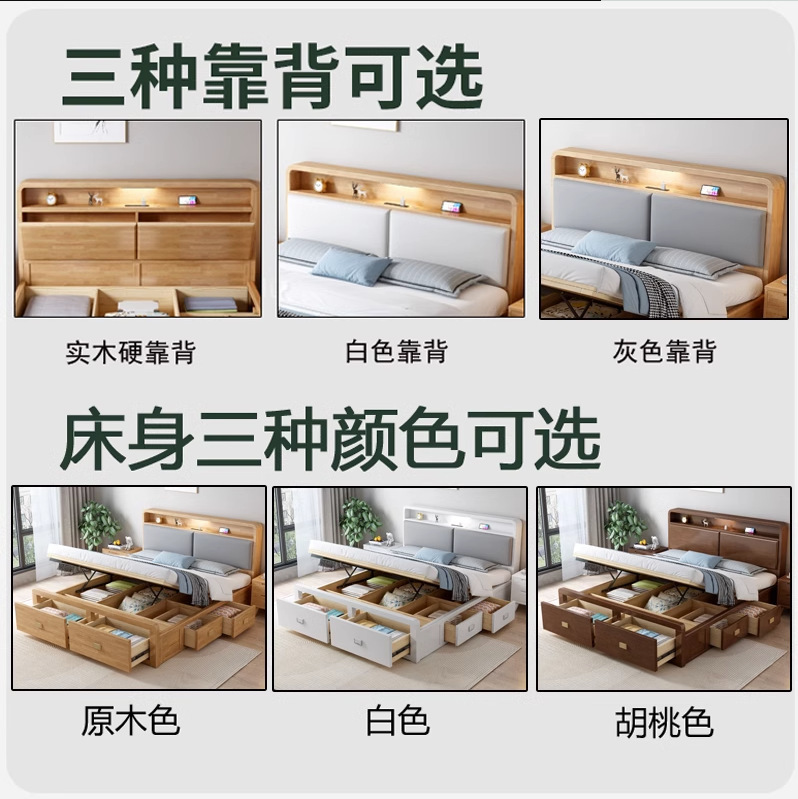 北欧实木床高箱抽屉1.8米双人床现代简约主卧气压收纳储物床批发