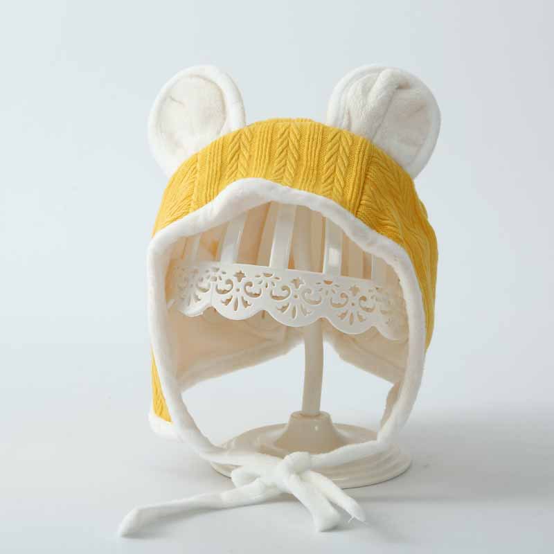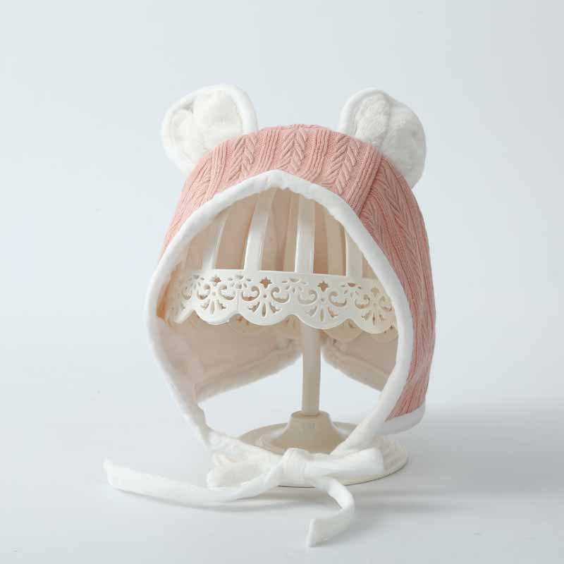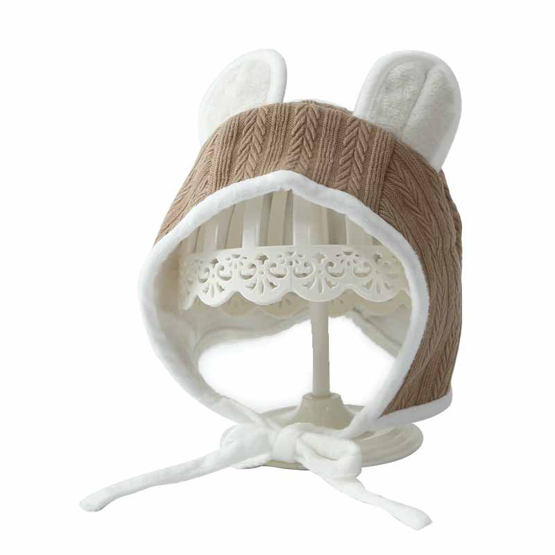 婴儿帽子秋季新款可爱小耳朵婴幼儿凹造型护耳帽防风套头系带帽潮