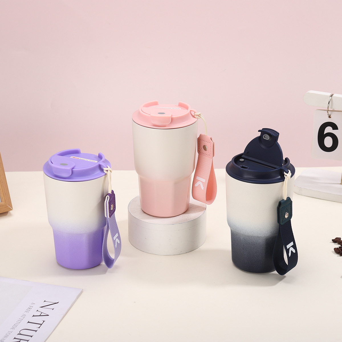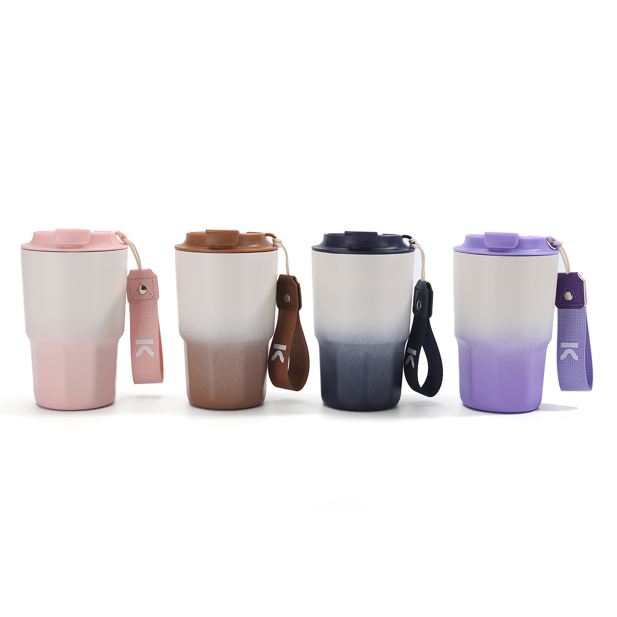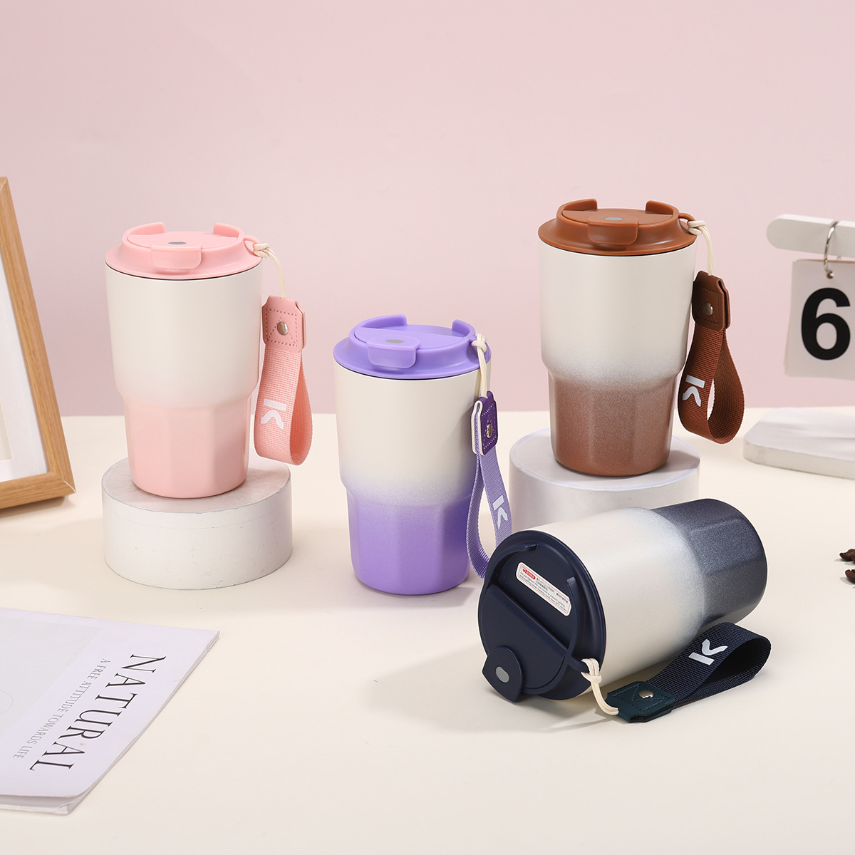 高颜值316不锈钢保温杯渐变色带提绳八角咖啡杯商务礼品杯批发