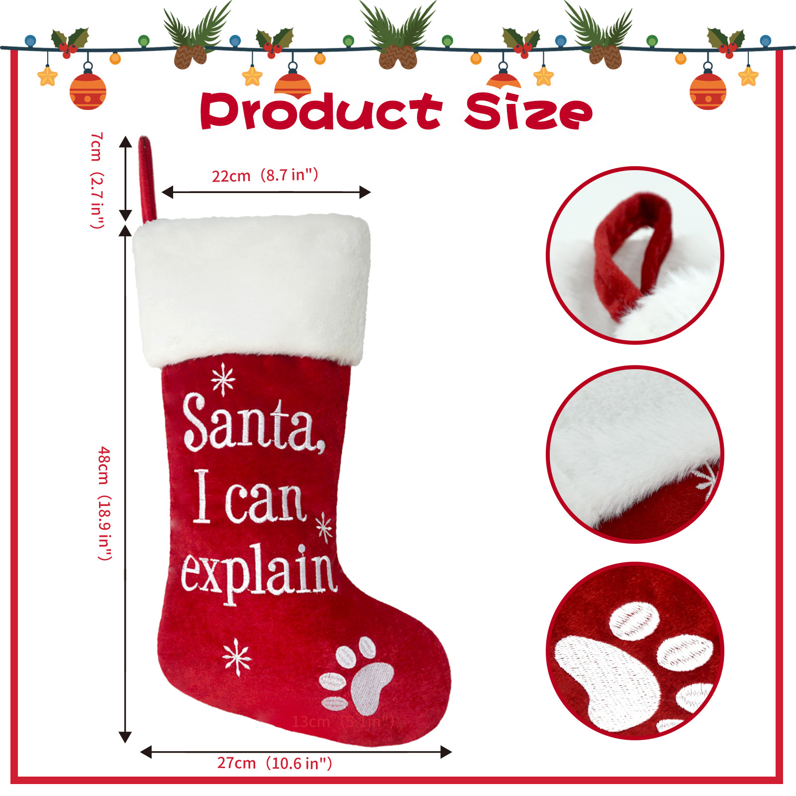 圣诞袜批发圣诞老人袜刺绣精致儿童礼物袋圣诞树挂饰狗爪装饰英文