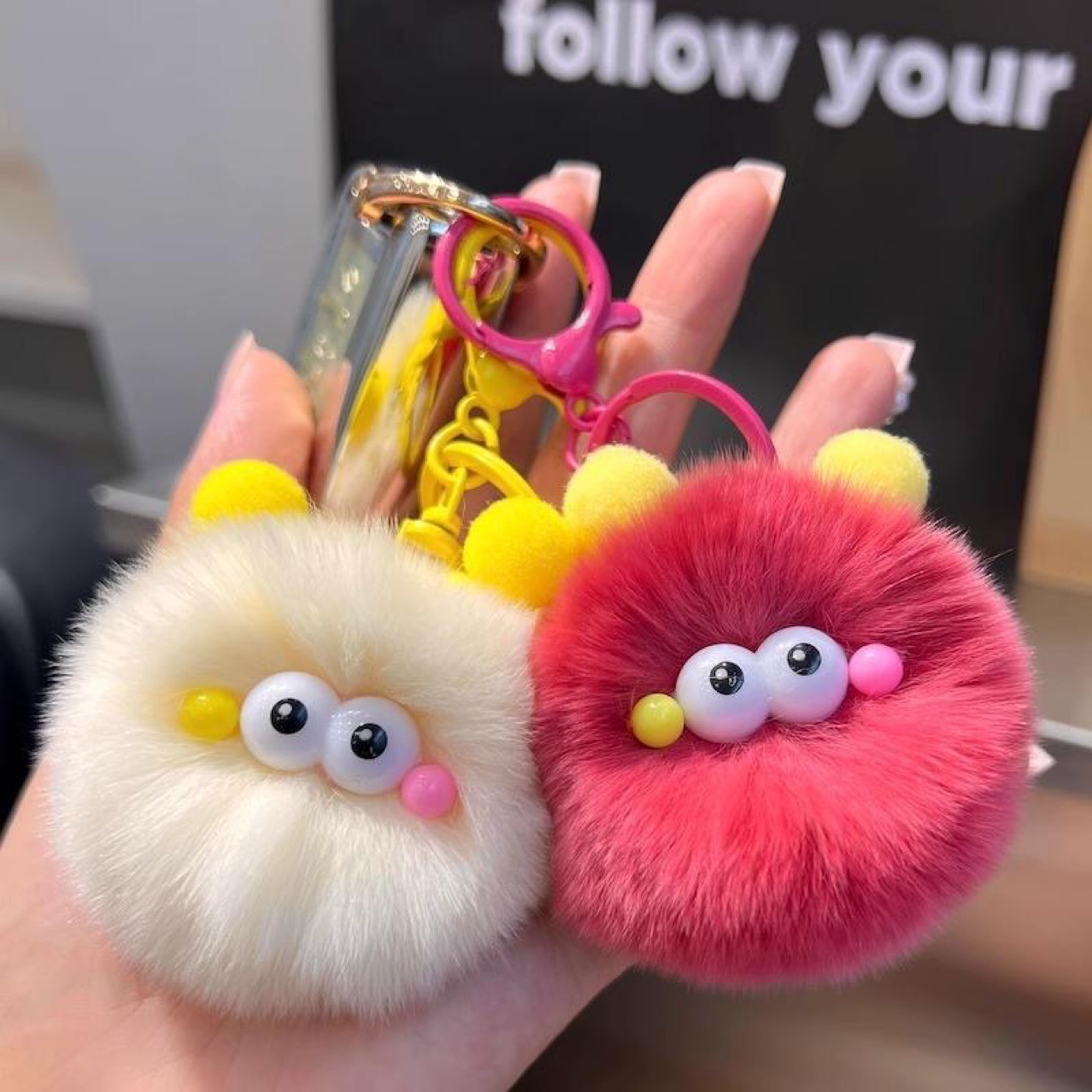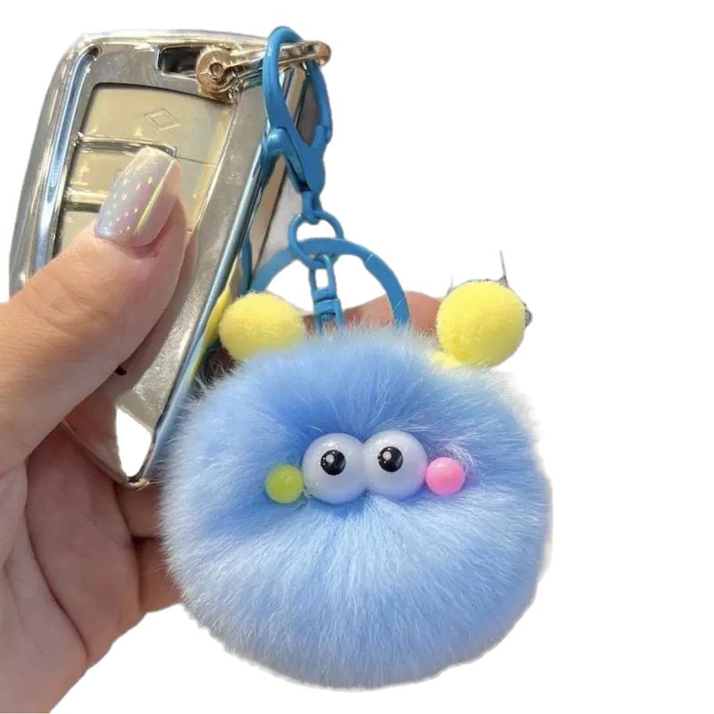 新款仿獭兔毛小煤球汽车钥匙扣挂件毛绒球创意玩偶书包包挂饰礼物