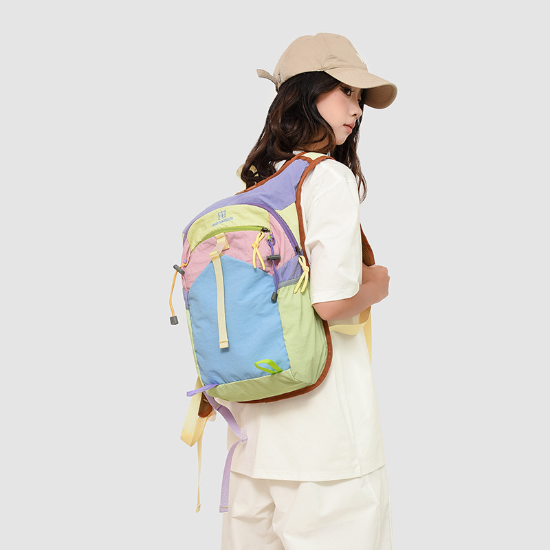 户外轻便登山背包2025新款大容量拼色学生书包短途旅行电脑双肩包
